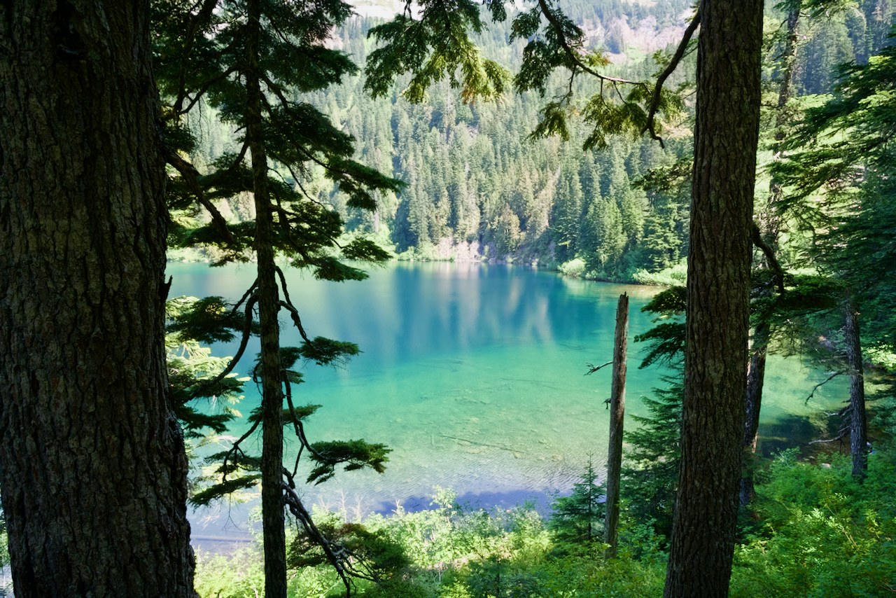 The trail was, indeed, busy. We encountered several backpackers headed back down the trail and many open spots at the lake on Saturday, which was surprising.