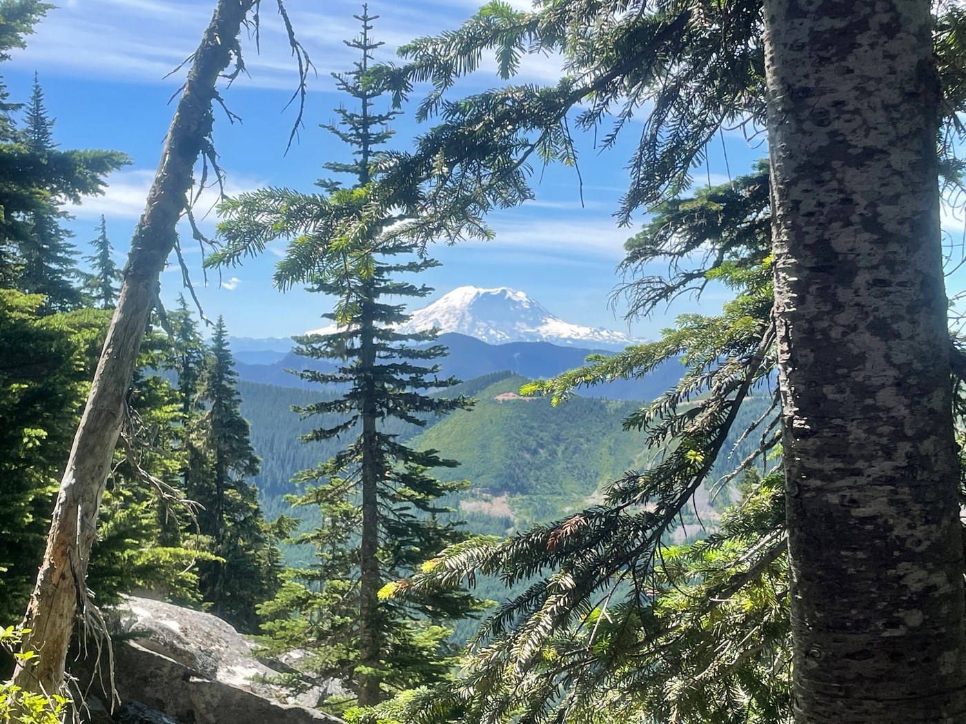 At the trailhead (I arrived at TH about 11:30 on a Saturday and there was still parking available along the side of the road) plenty of cars...and apparently only one other hiker. They are all rock-hunters apparently - I didn't know this was a thing out there. After taking that initial right turn off the trail, up a very loose and steep embankment, I only saw the one other person (+ her two well-behaved pups) and no one past the trail intersection with the upper road (#5510-110). In the early portions of the trail every stump and the hillside is pocked with excavations. Initially I thought the work of a meth-addicted badger or something...but then I realized, "...no, just us humans..". While I appreciate that everybody enjoys the out-of-doors in different ways, it's sort of a shame the mess that's been made out there by the digging. Lots of undercutting of embankments and trees, erosion, piles of dirt and rocks, etc.