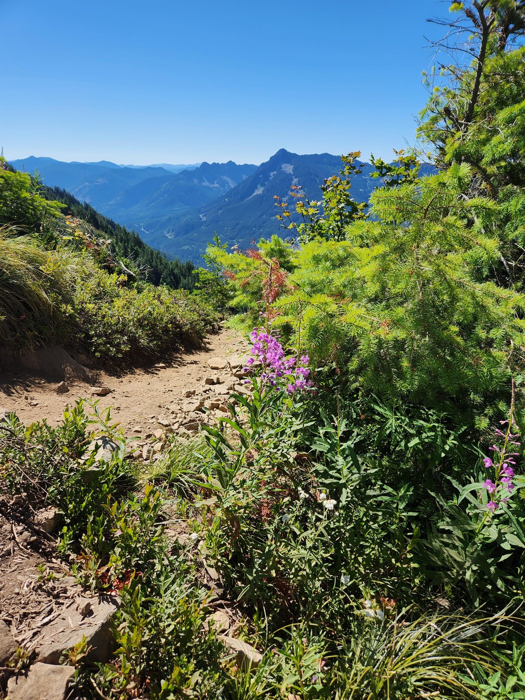 The trail is in fairly good continue. It's your typical rocky I-90 hike with a few easily passable blow downs. However I was very surprised at how brushy it was! This is my 4th or 5th time up and I don't remember it being this bad. A few times I had to make sure I didn't accidentally take a side trail. It also made crossing the chute up top a little tricky, because with my heavy pack, I needed to stay on the uphill side, forcing me to have to brush past the bushes (and devils club!).