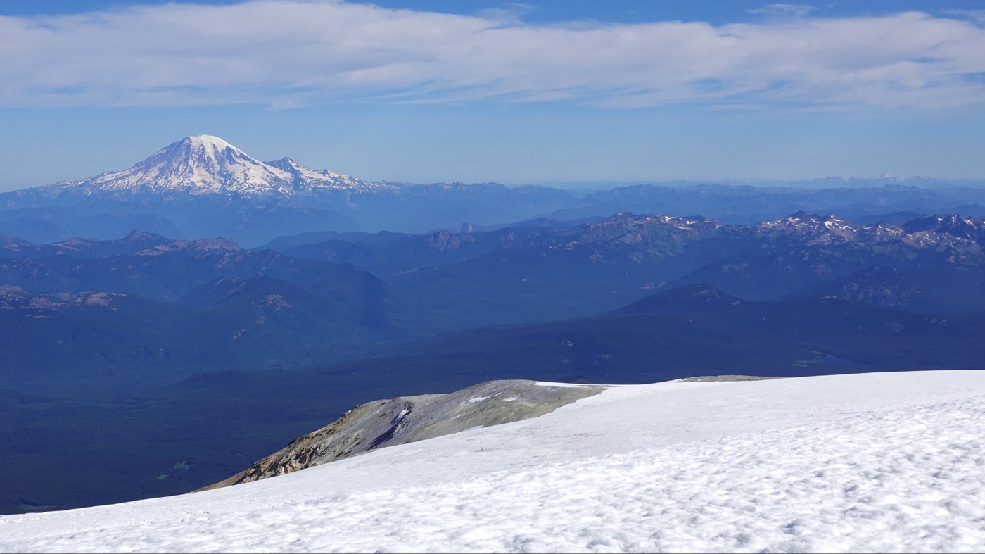 Views were breathtaking - a Who's Who of all the major peaks in Washington and northern Oregon. I thought I could make out a faint outline of the Sisters to the south.