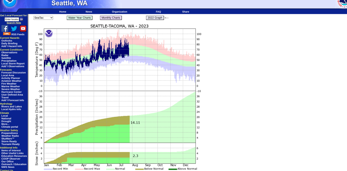I hate to report that the flowers in the subalpine meadows around Paradise are quite subpar. For instance, I did not see one lupine plant in bloom on the Golden Gate trail. Photo 4 shows how dry and warm it has been this year compared to average (from the NWS).