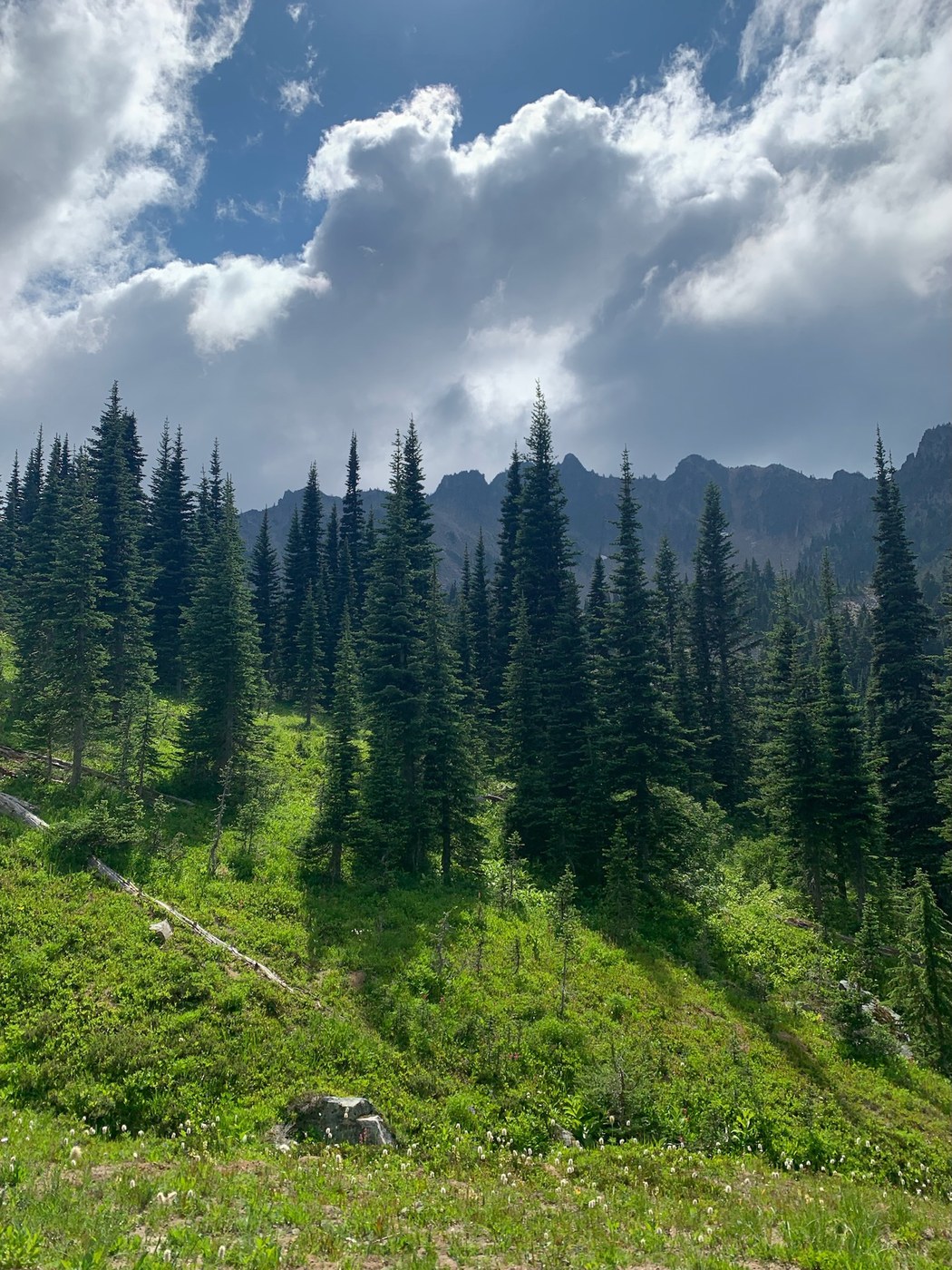 After making it into park and stopping at Sunrise for lunch, we hit the trail around 2:30. The trail is in great condition, and we had it mostly to ourselves. While we didn't see any, the two other parties we passed had seen black bears and possibly cubs. Wildflowers up here are truly amazing right now. Tons of seeded anemone, pink paintbrush, lupine, tigerlily etc. It took us about an hour and half with minimal stops to reach Upper Palisades. The lake seemed abnormally low but still pretty; we got water from the stream that separates Camp 1 and Camp 2. Always important to practice safe food storage in the backcountry, especially when there's known bear activity, and the Upper Palisades camps made that easy with a great bear pole and ample spots to cook away from camp. The next morning we hiked Brown Peak and took a dip in Hidden Lake. Views from Brown are pretty good, and water at Hidden Lake was cold but oh so beautiful!!! We saw lots more people as we headed out which makes sense for a Saturday, but I wouldn't call it crowded.