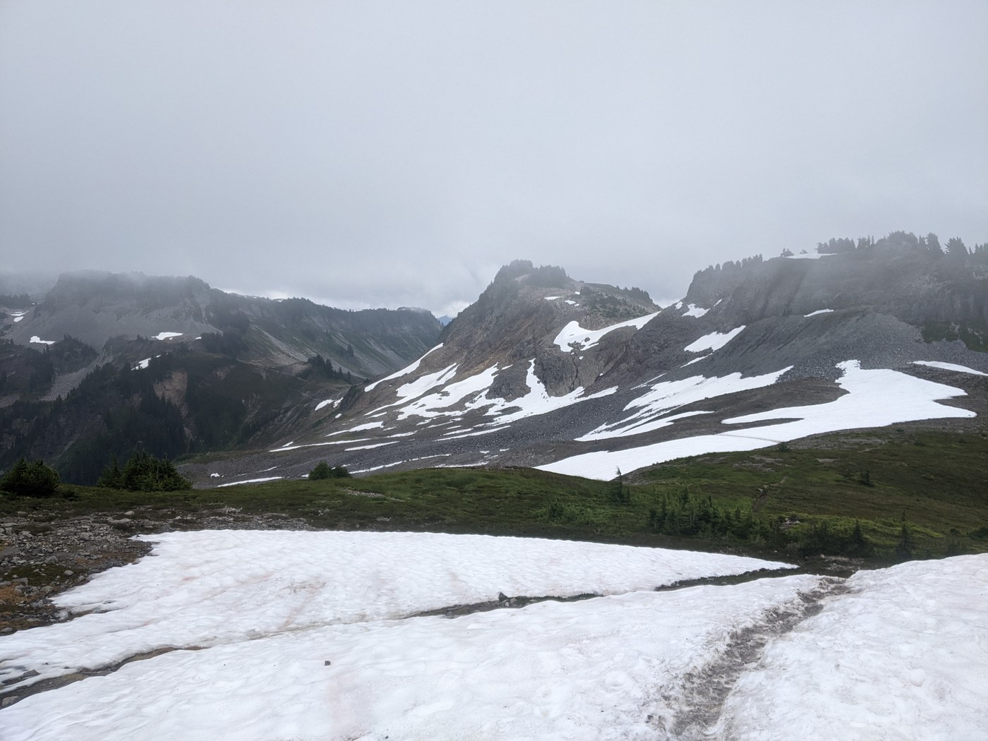 I day hiked Ptarmigan Ridge from Artist Point. It was a cool and misty day without a lot of distance views. The snow is melting but snowfields are still present on the trail, especially after the first mile out of Artist Point. It was a lot of fun with micro spikes, hiking poles, and an ice axe for some of the more challenging spots. I saw a Ptarmigan and a Marmot on this hike. For more information, check out the video below.