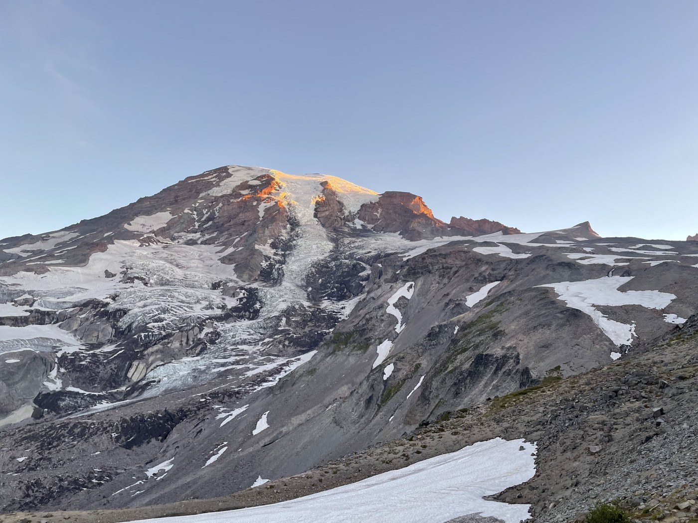 I've been trying to catch sunrise at Paradise forever. The Perseid meteor shower was blitzing up the sky and obliterating the parking on the mountain. I arrived at 4 a.m. and missed most of the show, but there were stil a few streaks in the sky. Going clockwise meant an easy (because of the paved trail), steep traverse in the dark. At one poine there was a large dark fleece blanket that was left on the trail. Let me tell you how hard it was to determine it was not an animal. Headlamps can only do so much. I'll have to come back for the flowers since I didn't get to see much until Panorama Point when the sky lit up. I went down Golden Gate. I was just up there Monday, but it was misty and moody, and seemed much more colorful than today's first morning light display. If you're out for flowers, Golden Gate isn't going to give you that treat right now, maybe not this summer. The drive up and down had the best display. So, so pretty! I wanted to hit more trails since it was still early, but the smoky haze was doing a number on my ashtma, so I had to call it a day. Oh, last thing, I fianlly came across a marmot. It's been wildlife lite this summer. I was going down Golden Gate just asking where the heck were the animals when a light colored marmot popped out of the shrubbery (pronounced like they say it in Monte Python and the Holy Grail). I was up on my toes. Then it started toward me and I was not on my toes. But then it took a languid stretch, reaching out and opening its mouth. So dang awesome. Happy trekking!