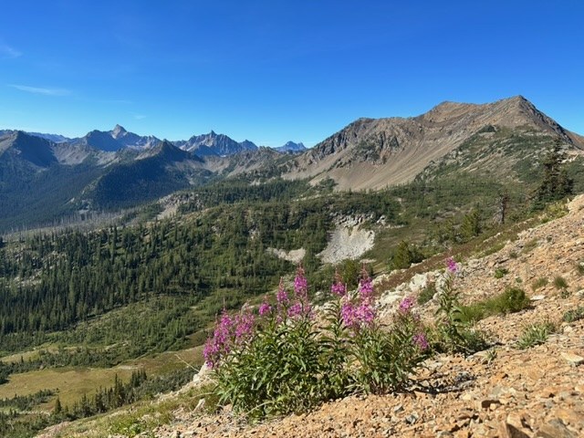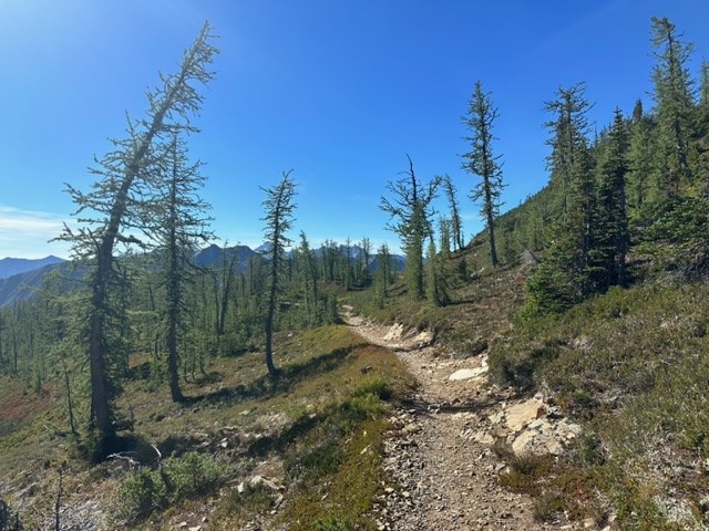 The trail is beautiful - some reds coming out in the foliage. There are so many larches - it would be fun to come back when they’ve turned.