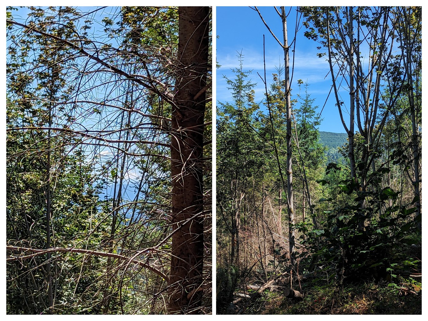 Just a quick easy saunter through the woods to a summit with barely peekaboo views of Rainier and Tiger Mountain. Pretty fully shaded the whole way, and it's clear that it has been logged, although there are still a few impressive old trees. The main point was to tick a box: Taylor Mountain is the only one of the Issaquah Alps that I had not yet explored. It doesn't really have anything that Tiger or even Squak doesn't have more of, but now I've seen it. It does seem popular with horses, although I only saw... what they left behind. In fact, I didn't see a soul on the whole trail, just a slug and some butterflies.