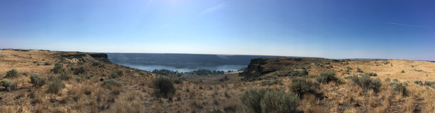 Our family camped at the nearby campground. There were wild turkeys and rattlesnakes which were fun to see. The walk to the hike was easy. As we started the climb with an 11-year-old and a 12-year-old, the first part of the climb had loose rocks and required some scrambling. The younger kiddo had no trouble, but the older kiddo and I had to really watch where we were placing our hands and feet as to not dislodge too many rocks. The rest of the hike was over and around solid basalt rock. When we arrived at the top, the view was glorious. The bush was dry, with few wildflowers and no bugs, but it was very warm. All in all, Steamboat Rock was an adventure for the kids with great views at the top.
