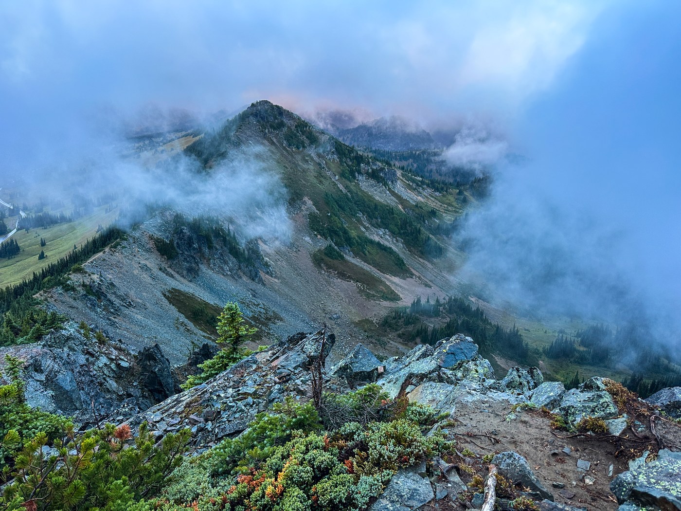 Even though Mt Rainier was going in and out of clouds early, it was a great hike.