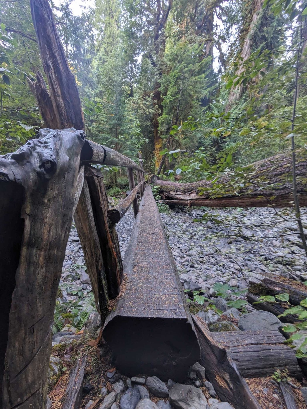 We hiked to Spike Camp and just a little bit beyond. There was a tough spot in the beginning but over all the trail followed a slow, gentle grade up. There is a bathroom available at Spike Camp -- but bring your own toilet paper. There were quite a few loose rocks on the surface of the trail which were a tripping hazard. On our return we took the Staircase Rapids trail which loops back to the same trailhead.