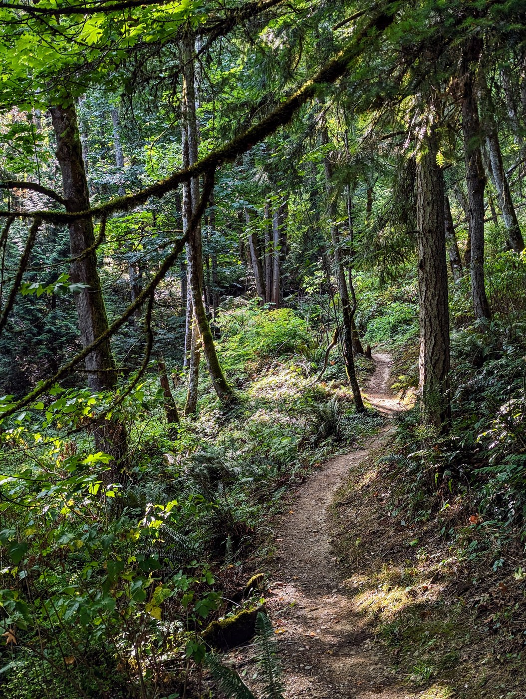 The trails are smooth and dry-but-not-too-dry for the whole loop - perfect for a brisk hike or trail run right now. The recent rains have perked up the plants nicely as well - the ferns on the downhill side of the Fantastic Erratic really look... fantastic? right now, like a bunch of feathers.