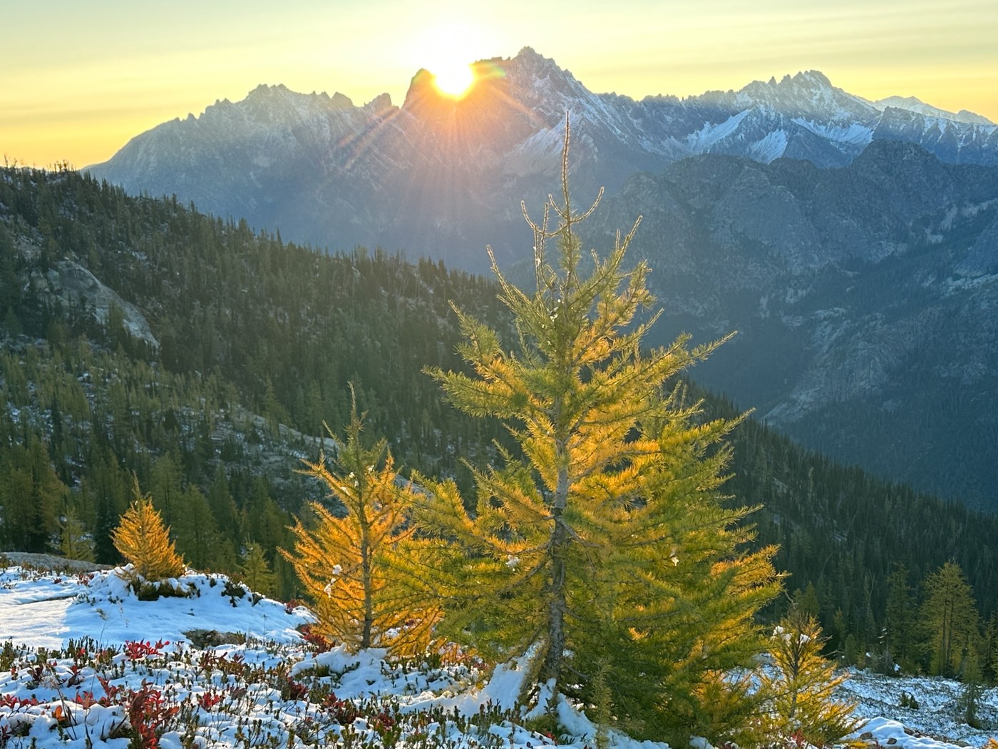 Larches varied from light green to light yellow as I climbed elevation. Larches were at prime at the pass.
