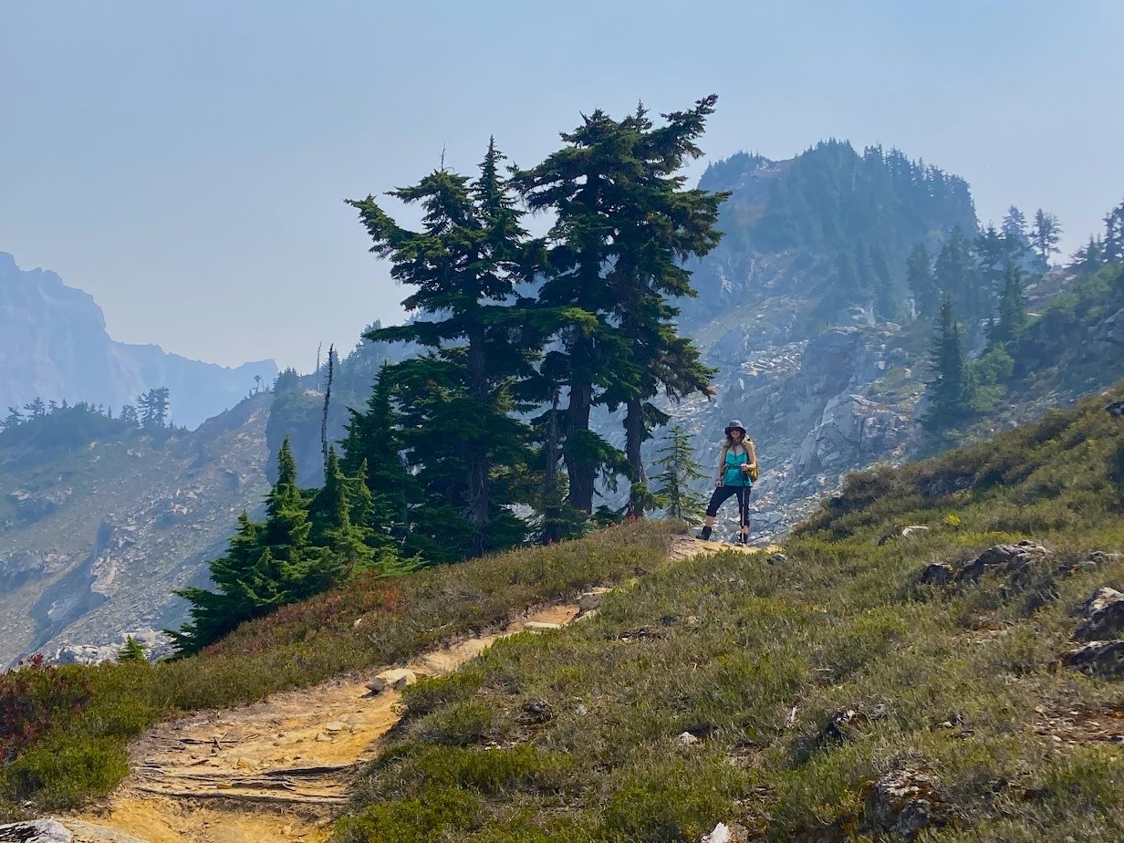 Even though there were wildfires raging not too far away, we were lucky and just got haze, no real smoke. Lots of ripe berries. Spotted one bear on the way back from Twin Lakes, almost at the turn ff with Silver Lake. It ran the other direction! It was an exciting end to that hike, which had already been plenty exciting.