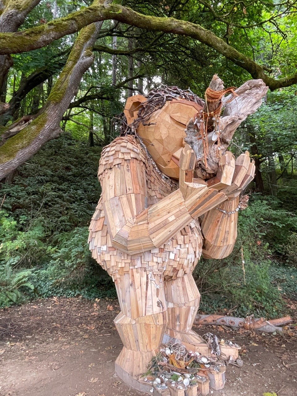 One of the Thomas Dambo northwest trolls is here, near the pool. There are many people around it, so you have to be quick to get a picture.