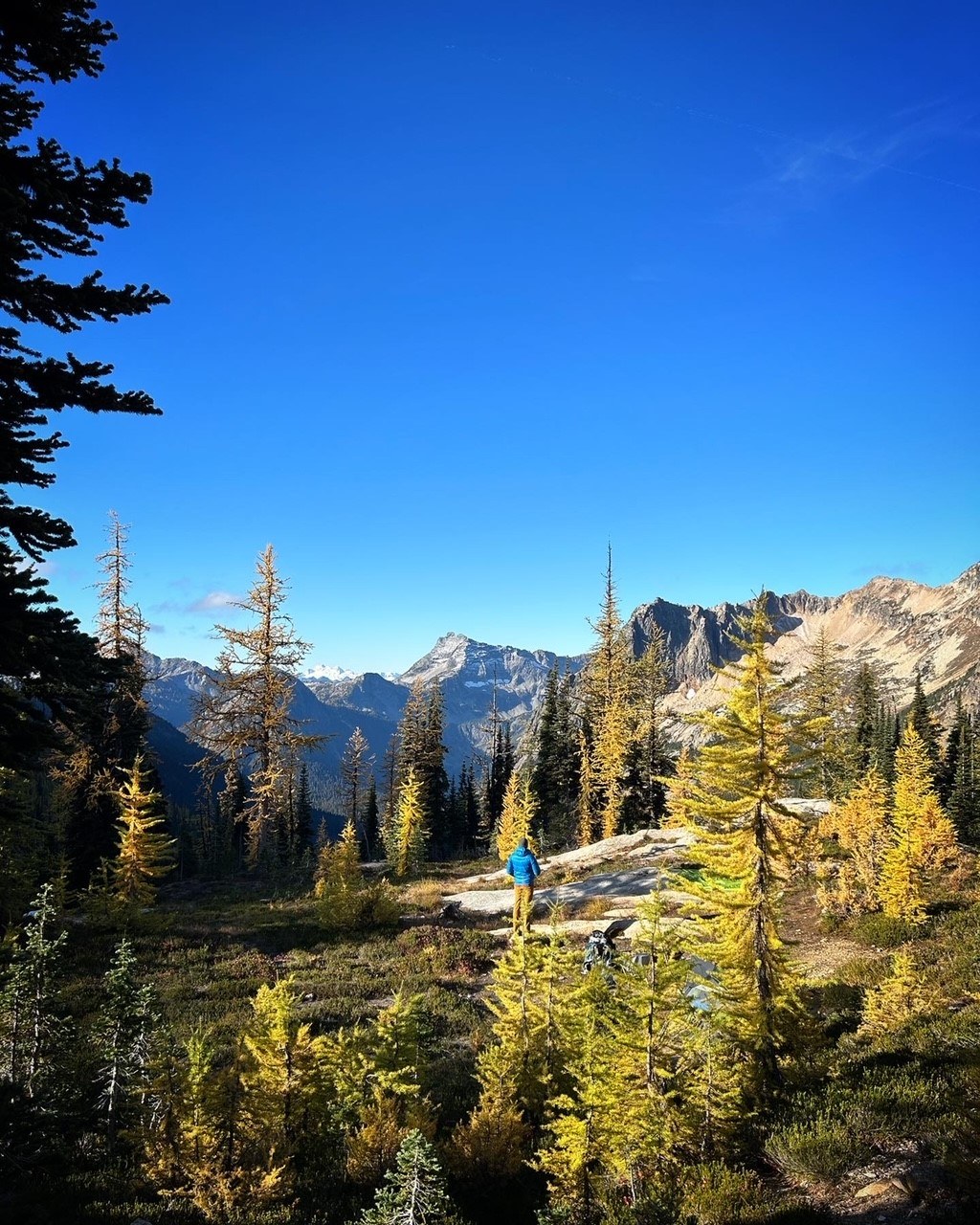 We did a one night overnight at the pass on Saturday 9/30 to enjoy the larch show. Road to the TH has some large potholes. We saw all manner of vehicles but just an FYI. When we arrived at 10am on Sat the lot was mostly full. We originally intended to overnight down near Cutthroat lake (we were ambitious and wanted to go up and over the pass to the lake), but when we found a spot below the pass with the most amazing view of the mountains and right in a larch grove, we decided to drop the heavy packs and do a day excursion over the pass instead. I also want to add that there are no water sources up here or immediately up and over the pass. I would advise filtering down by the creeks where the larches start before camping up at the pass.