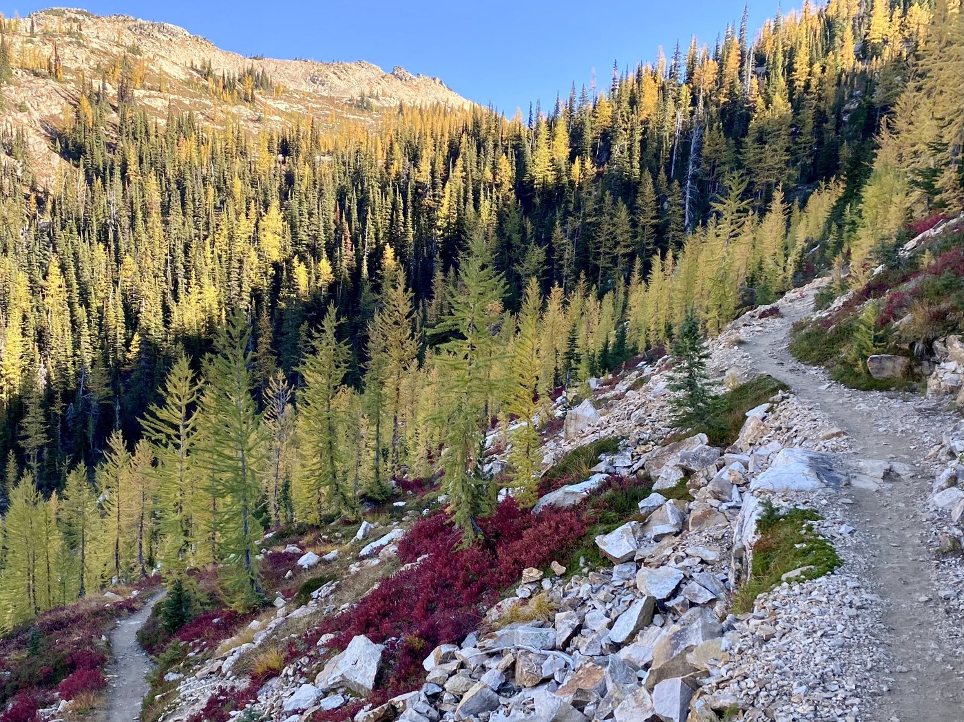 This was my third year in a row doing this hike and it never disappoints. Larches are peaking and should still be great next weekend. Trail is in excellent condition and the eye candy is magical and lasts for miles.