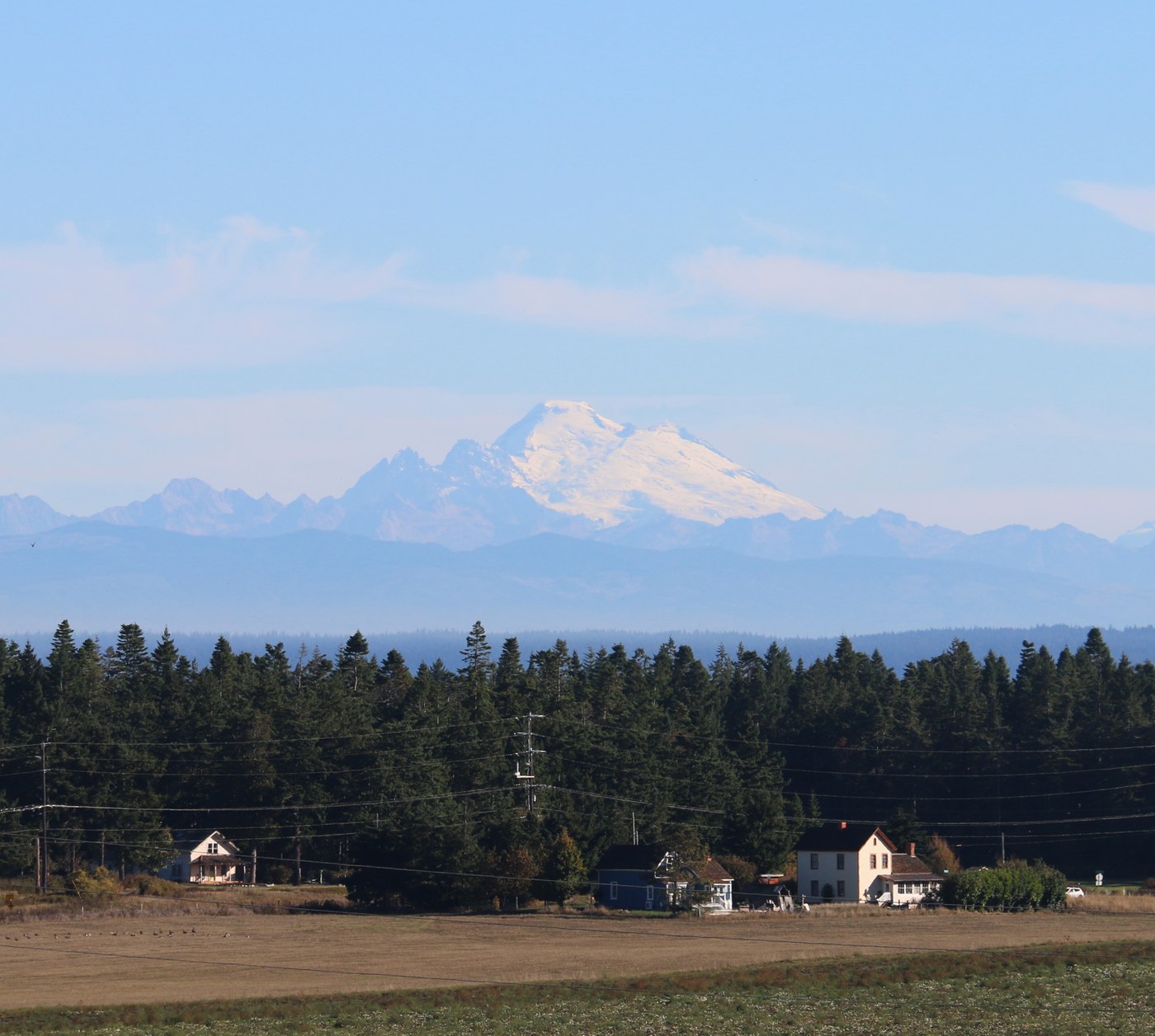 It was a gorgeous morning with the low fog slowly rolling towards the water over the farmland, clear views of Mt. Baker, the Olympics, up and down the straight etc. The outline of Mt. Rainier was just visible early but then got too hazy to see. A fair bit of wildlife, heron in the kelp fields, cormorant, ducks, gulls, what I believe was a Coopers hawk looking for breakfast in the farm field, a couple small (maybe yearling) seals in the water. Quite a bit of marine traffic out - cruise ship, big container vessel, grainer, big tug with a couple barges, the Victoria Clipper headed north, etc. On a personal note - we lost my little brother several months ago and he is up at the cemetery there (heck of a view, eh?) - would have been his birthday this weekend. I guess the message here is “life is darn short, go hiking”. A beautiful morning and cheers.