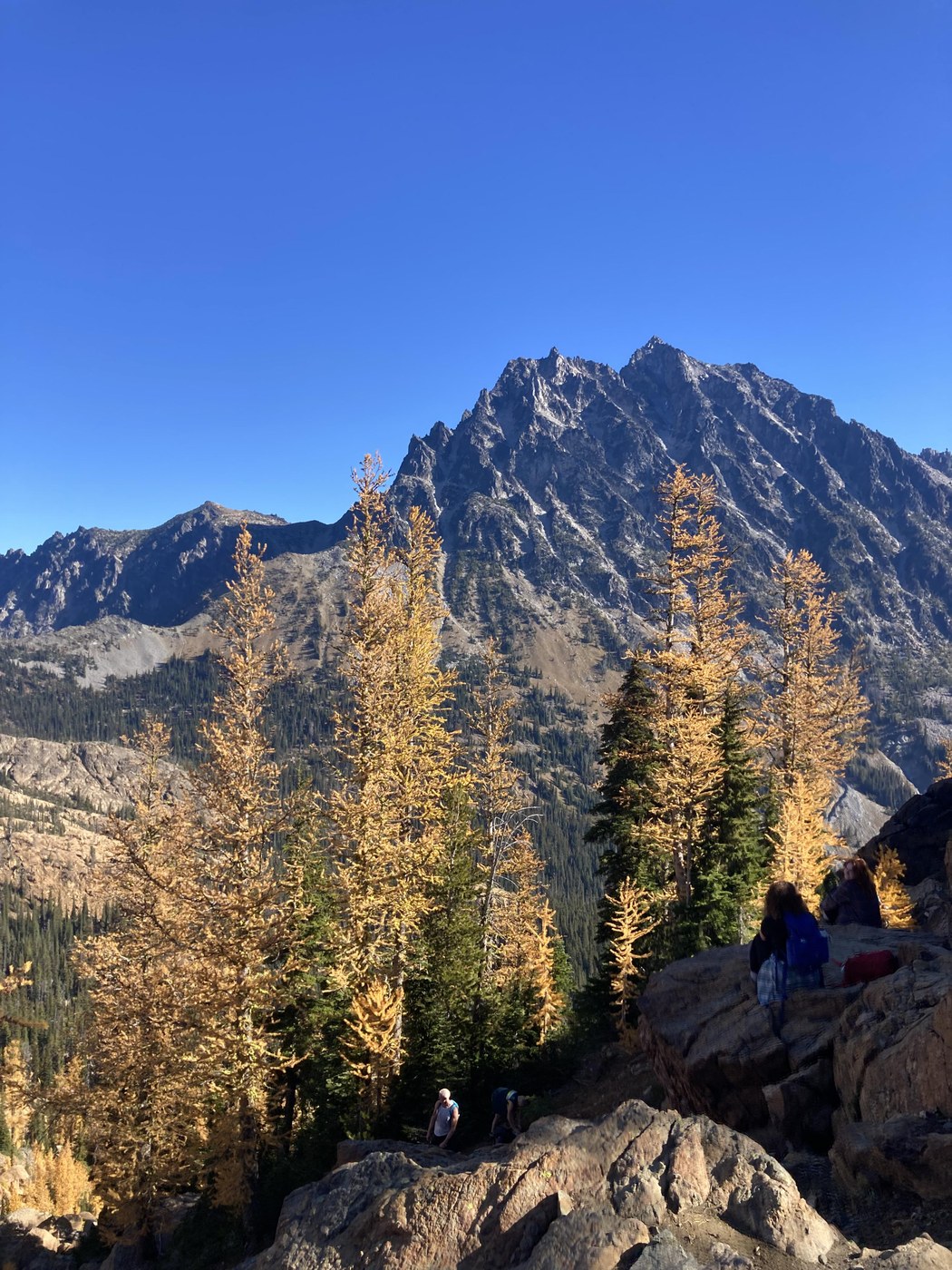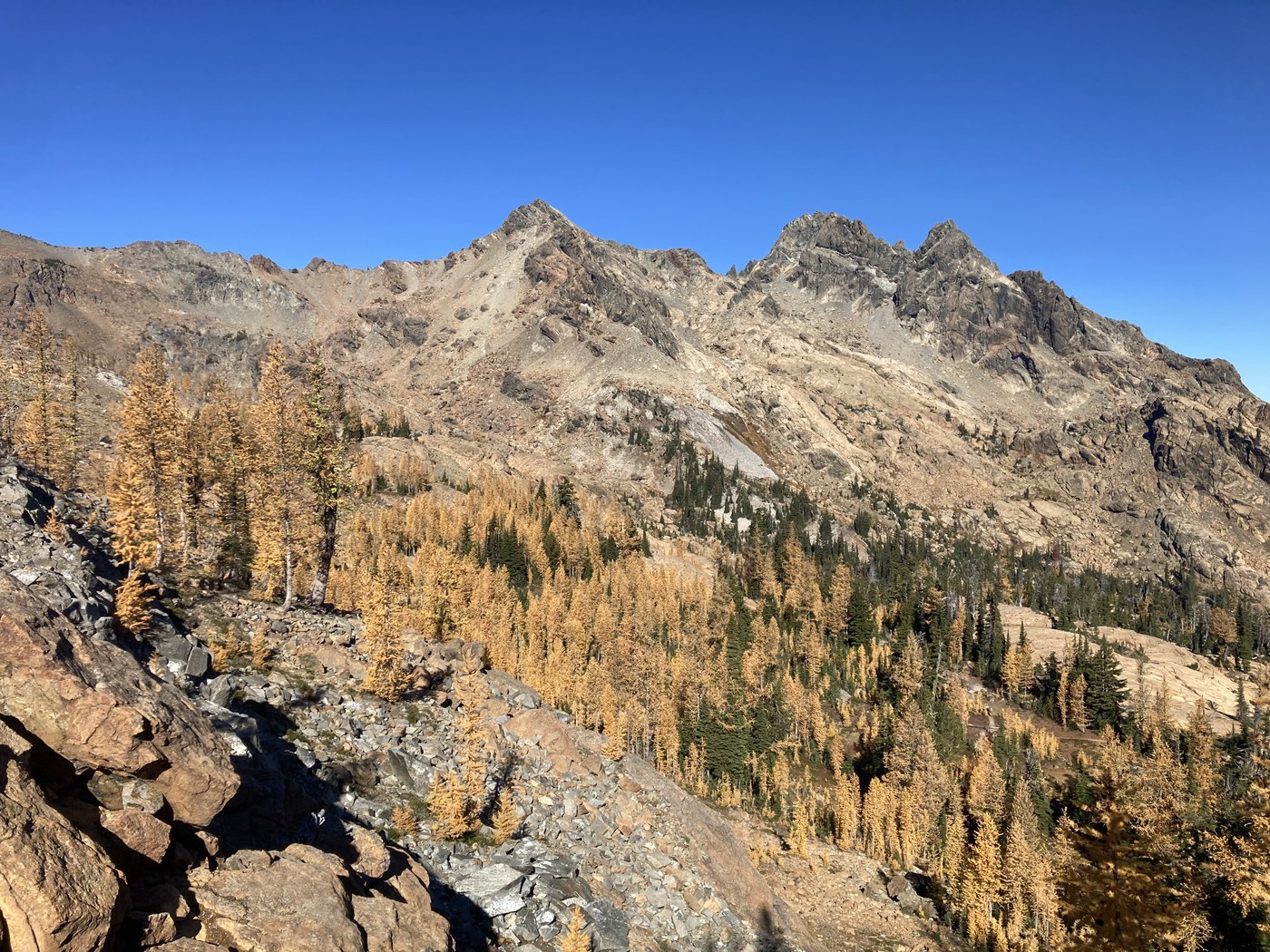 What a crazy day going to Ingalls! Wonderful weather and likely the last good weather of fall and the height of Larch season brought out the hoards today! I knew it would be busy, but I passed no fewer than 400 people on the trail today. I parked 1.33 miles from the trailhead and when I returned there were cars at least a mile further down the road. It was nuts! But the folks were all nice and most didn’t seem to mind me blasting past them as I ran the trail. I decided that since it wouldn’t be a “pristine” or “serene” experience I might as well make it a real workout. Thanks to all who let me pass in either direction! I hope I wasn’t too rude or caused you stress!