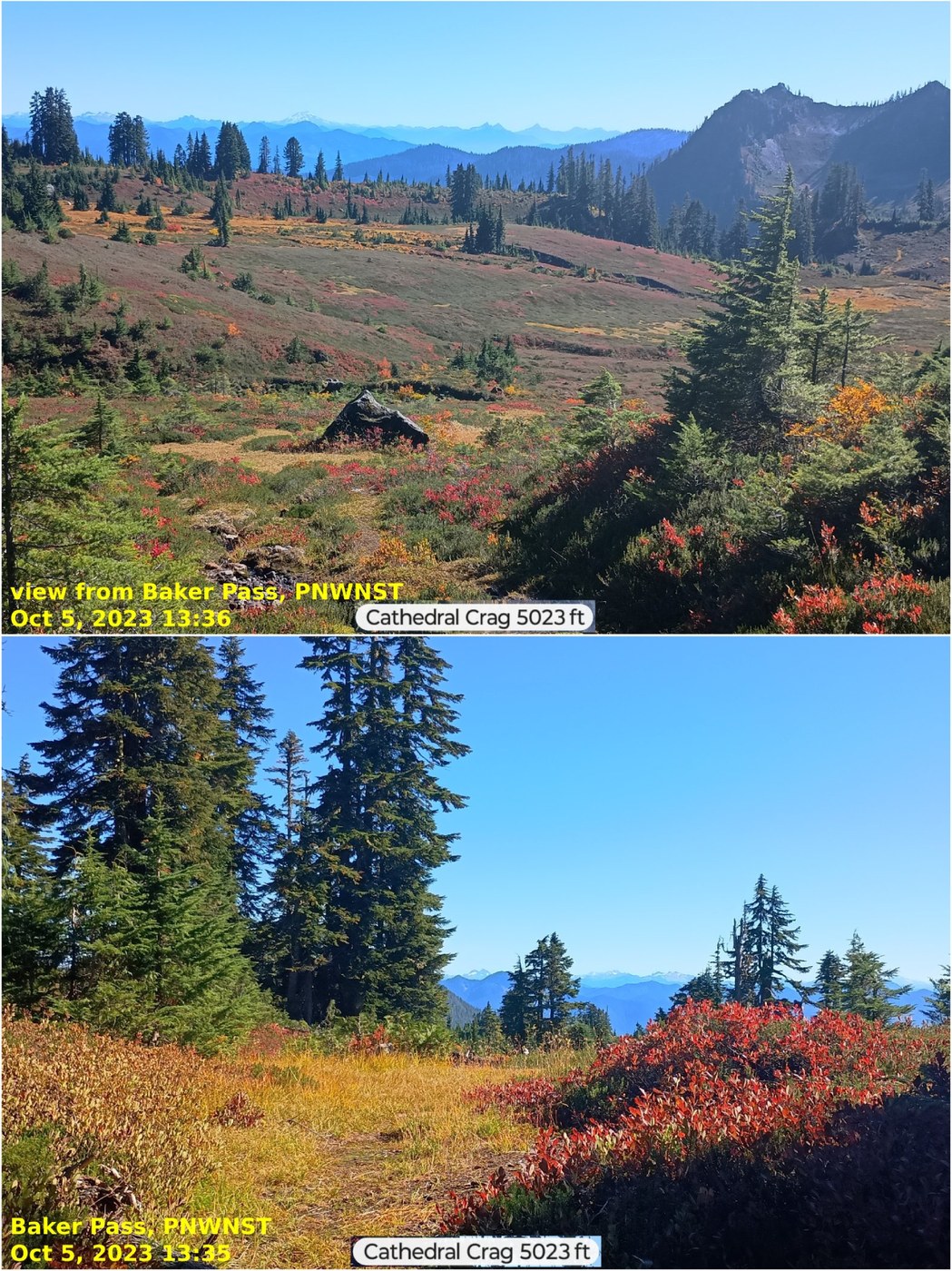 Gaia and Alltrails show this PNWNST (Pacific Northwest National Scenic Trail) traversing the northside of Cathedral Crag. And though PNWNST was mentioned in the Mt Baker National Recreation Area Trails (on the information booth beside the Park Butte trailhead), this "trail" itself was not shown in the Map.