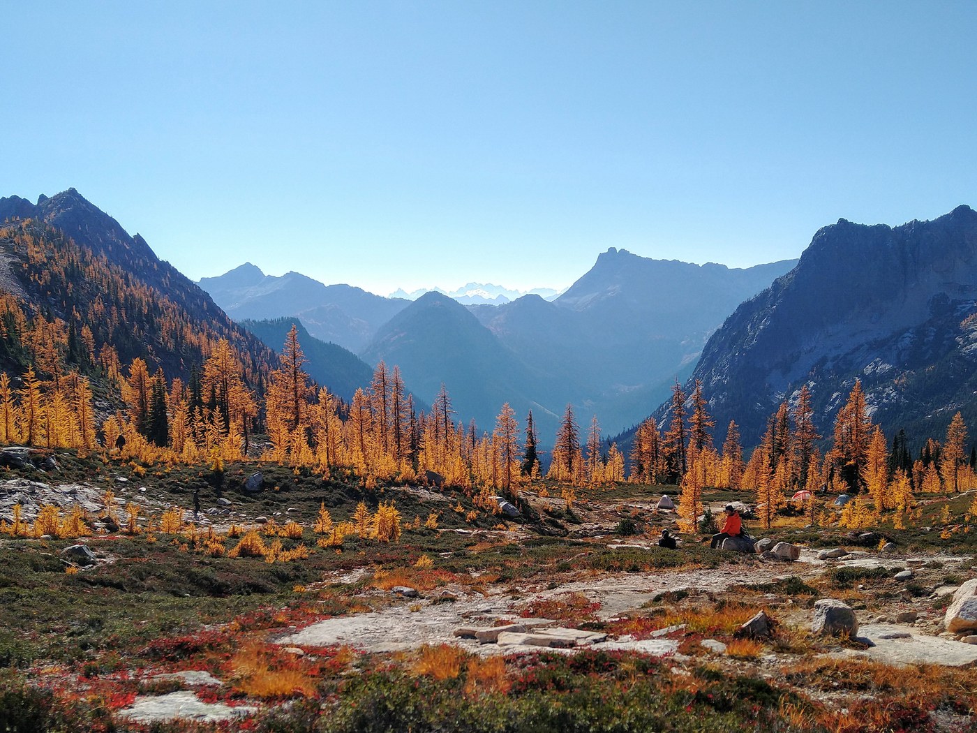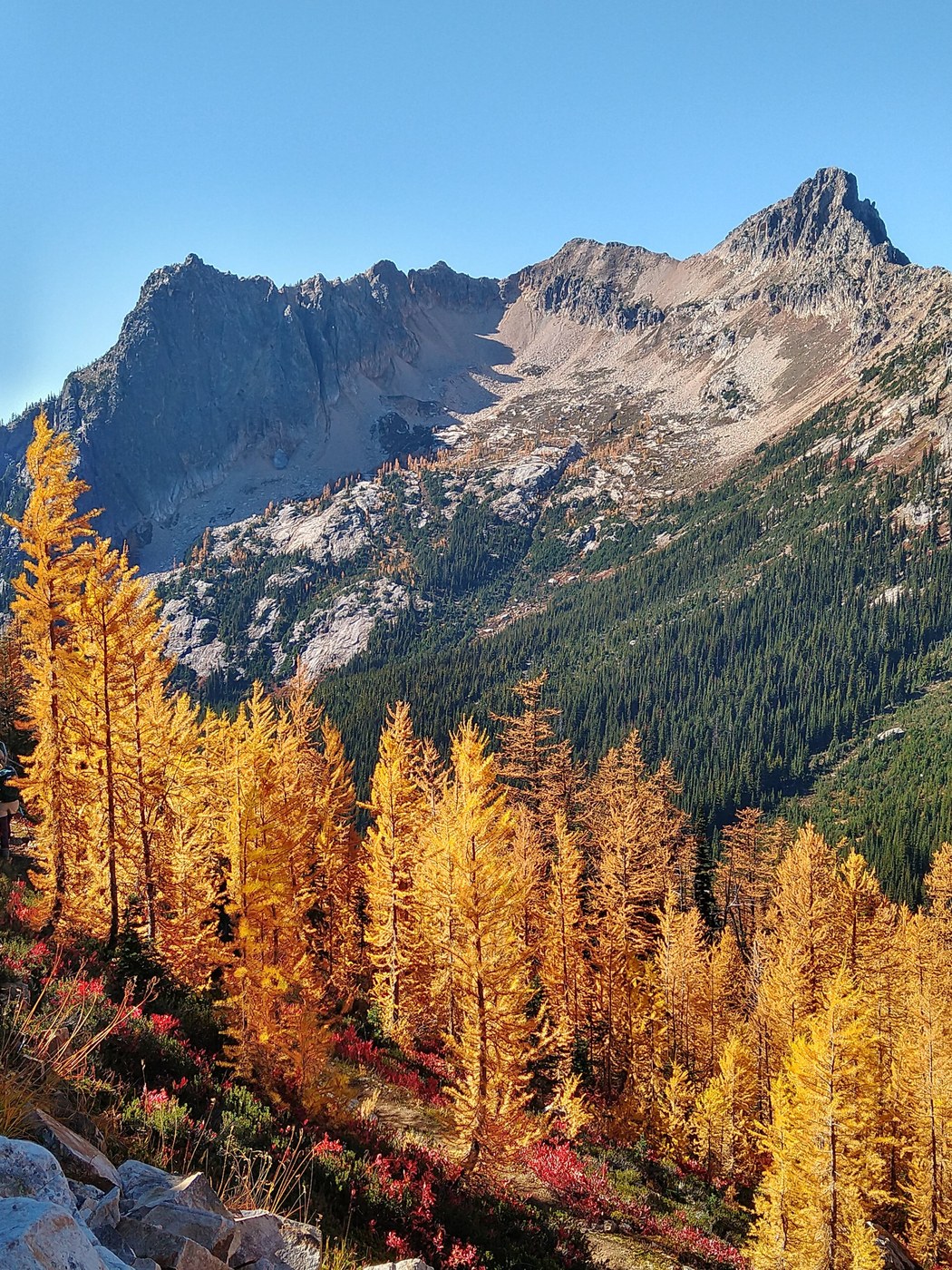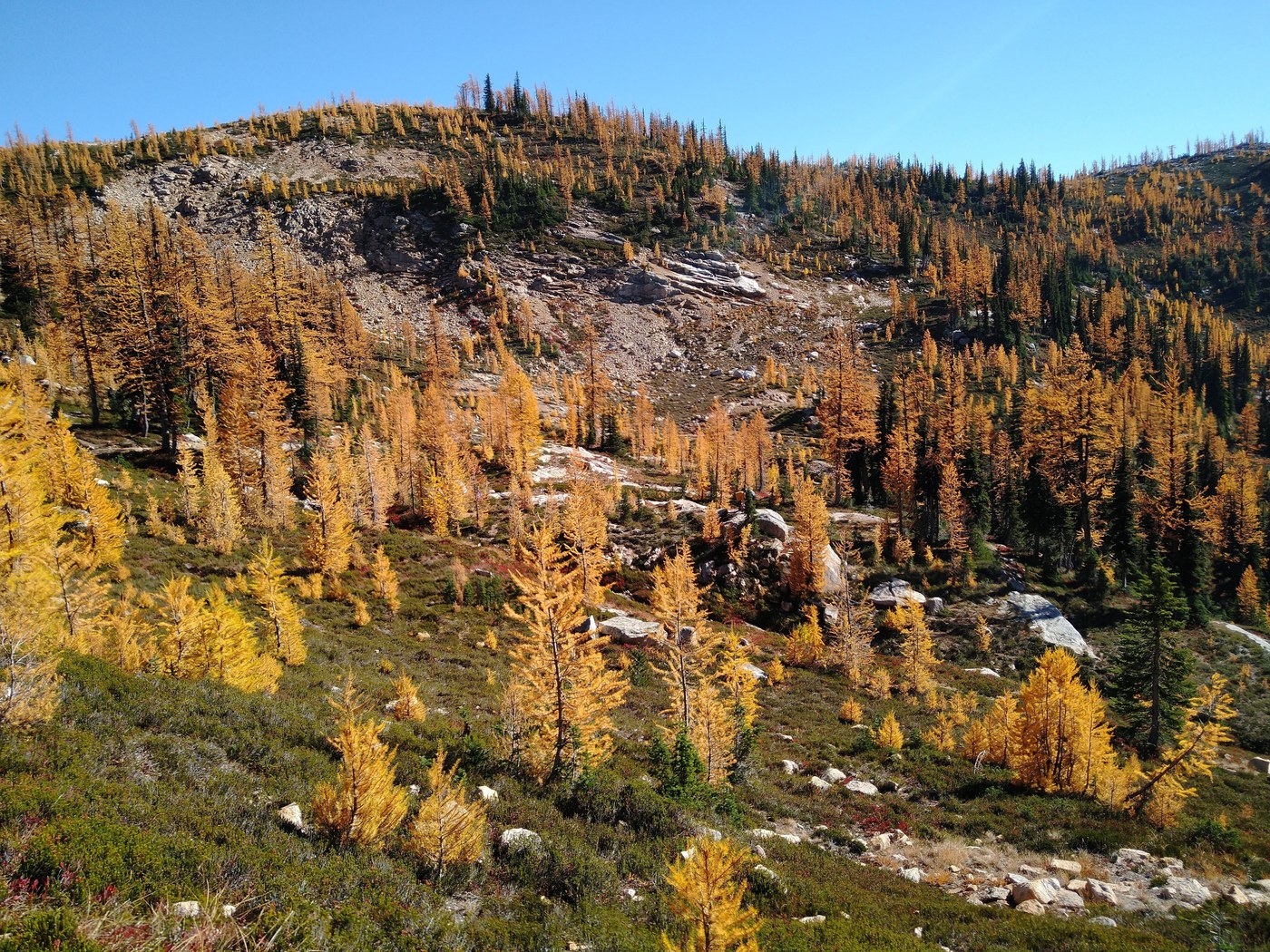 The trail's as well-maintained as it gets. The first couple of miles were pretty flat, shaded, and easy on the ankles. It gets rockier after that, starting to climb more, and then you get to the boulder and huckleberry field and golden groves of larches and it looks like the switchbacks go up forever, but if you stop to take lots of pictures like me (or stop to let people pass) it's not that bad. It was gorgeous and worth every step. Backlighting makes the larches absolutely glow in the photos. They're definitely at peak this weekend. 4.5 hours up (starting from the trailhead) and 2.5 hours down.