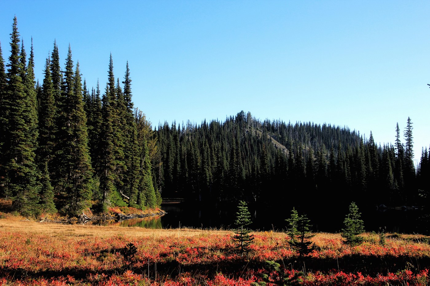 Overall, it was a nice hike, some late fall colors and multiple small lakes to stop and enjoy. The trail has some up and down to it, more down on the way out so you get to go more up on the way back. Since one of goals was to avoid the crowds, this was absolutely the way to go. I only saw two groups on the whole way out and only two more on the way back. I sat at Palisades Lake for lunch and didn't see or hear another soul. The fall colors make me think this might be a good berry picking trail at the right time of year.
