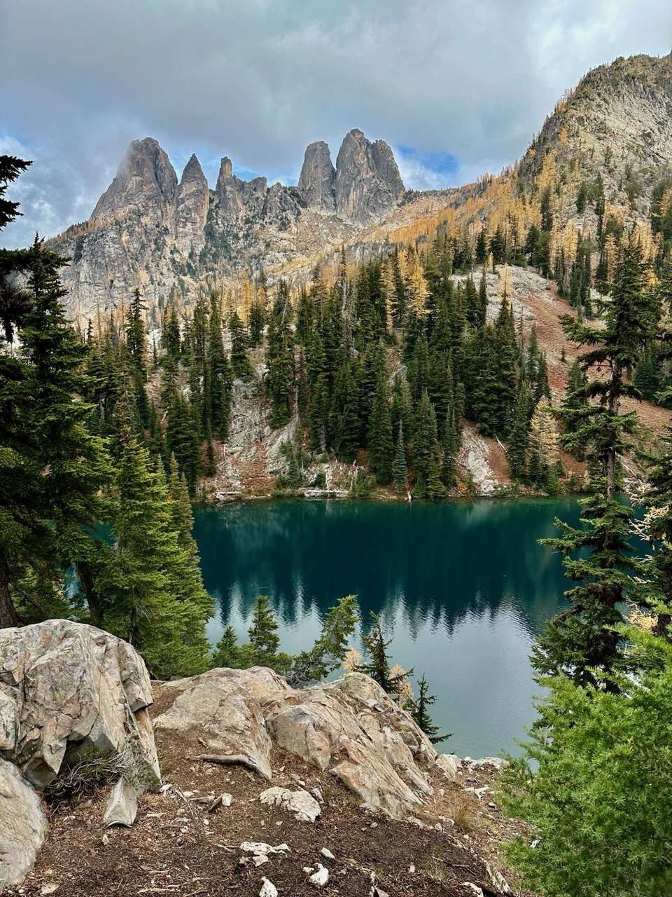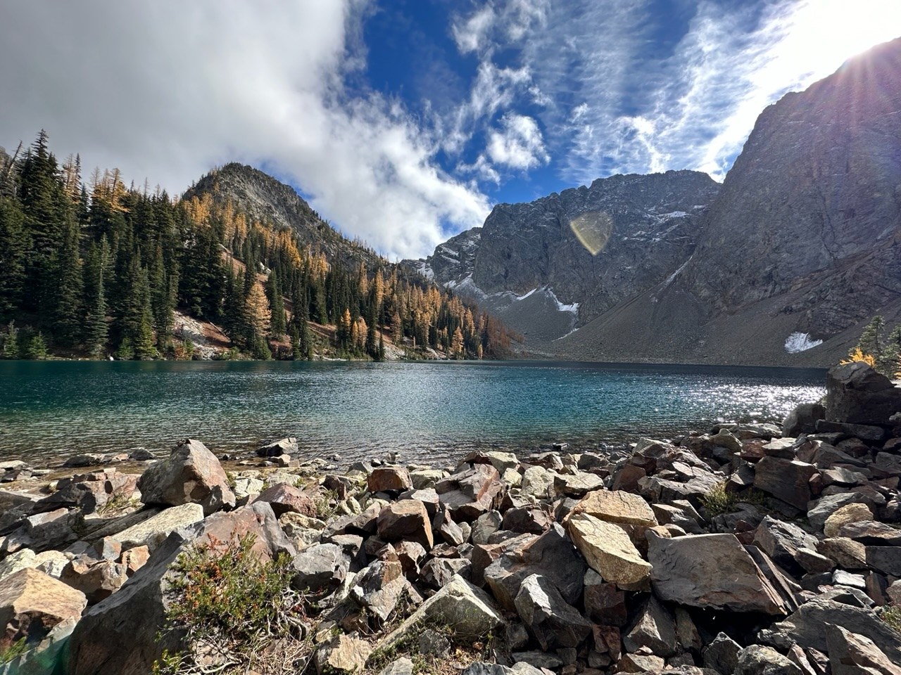 Trail in great condition but a bit muddy after the snow melted. The larches are past their prime as are most of the other fall colors - like berry bushes. It was very windy today so hard to say how long the larches will last. This is a very popular trail and even on a Friday, cars lined highway 20. Also note that dogs need to be on leash - there is a sign on the back of the trailhead bulletin board. And this is also a Drone-free area.