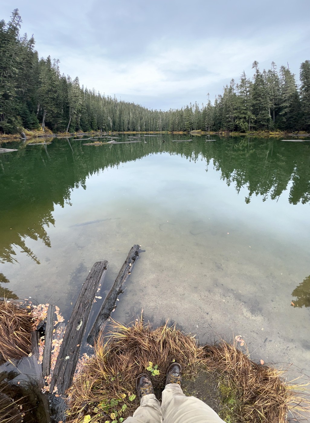 We came at this from the west side of the trail via FR 8511. It made for a short trek downhill to the lake. That portion of the trail is fairly easy going. No logs or anything blocking the path. The bridge that's at the lake that gets you over the outflow of the lake is down though. It's passable currently as there isn't any overflow, but I imagine with the rain we're getting and incoming snow, this will be an issue. If I had more time, I may have tried to make a fix. Lots of mushrooms at this time of the year.