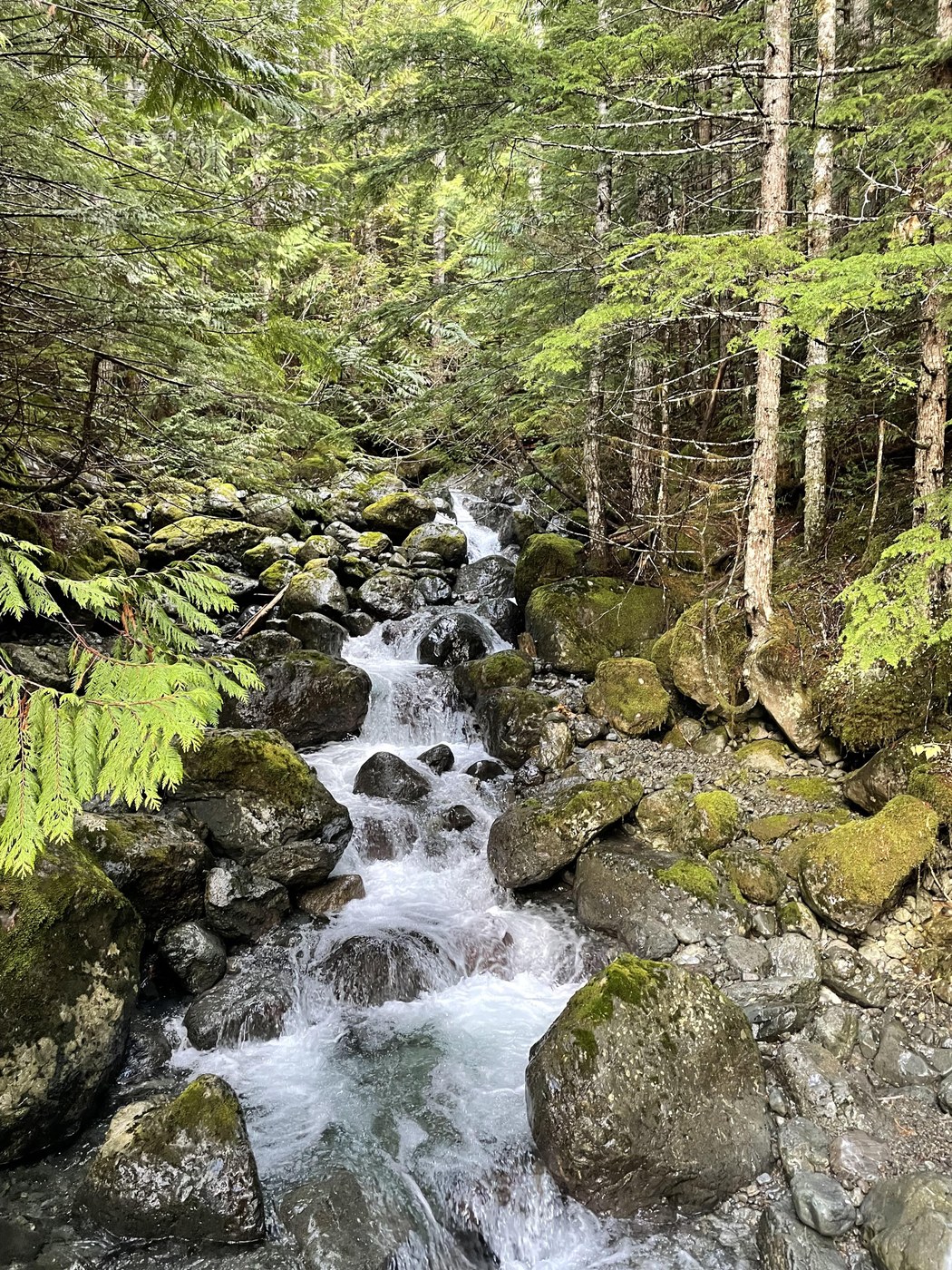 This is such a wonderful trek through the woods. I went clockwise, hitting the elevation in one extended punch. The path was clear of any broken trees, branches, or mud. Mt. Elinor and Mt. WA were out in all their snowy splendor.