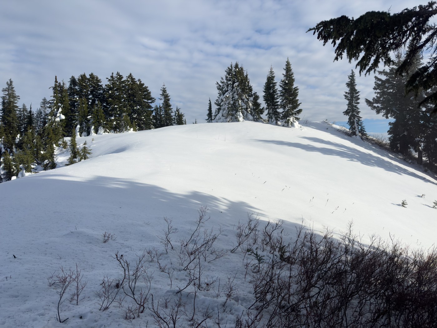 In summary, do not attempt to summit Scorpion Mountain unless you have winter scramble equipment and experience. I'd recommend stopping at Sunrise mountain which is a good destination to get some views.