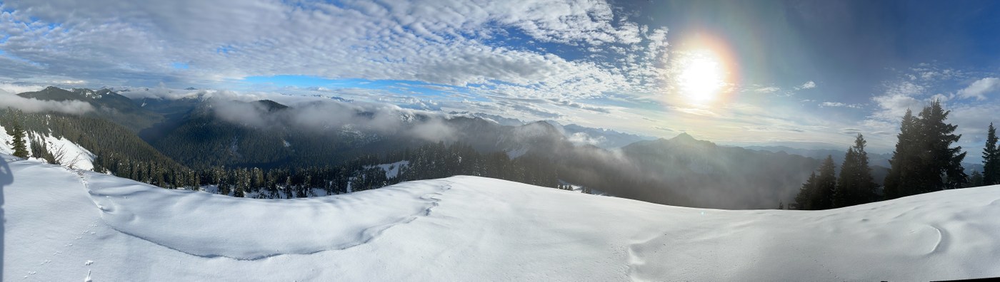 - From the trailhead to Sunrise Mountain, the trail is 80% covered in compact snow and clearly marked. Microspikes highly recommended and may be required.
