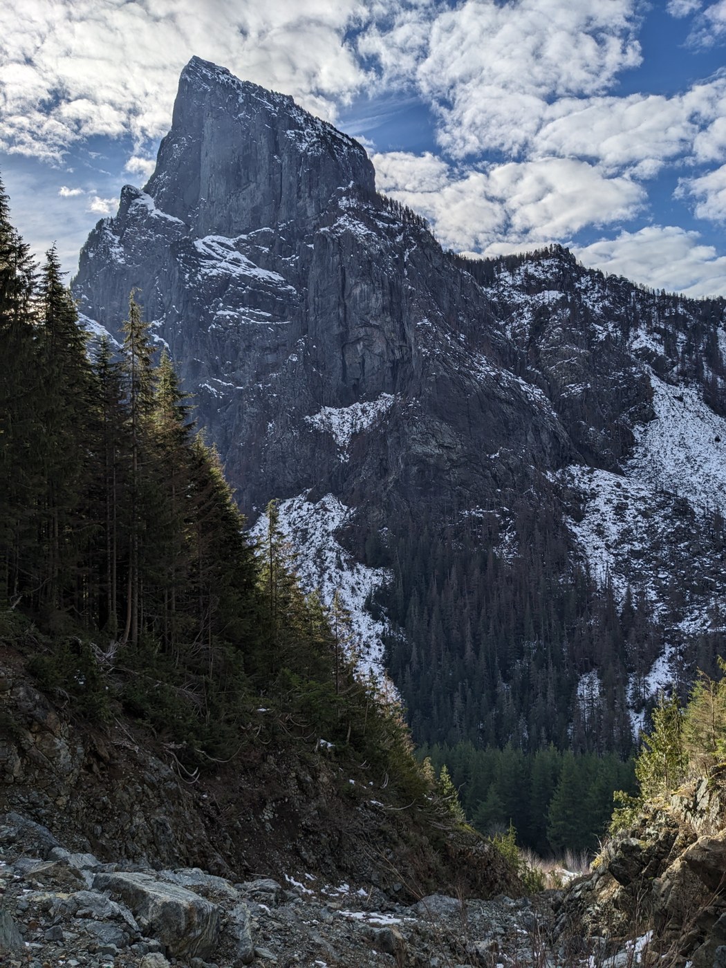 I heard that the road to Barclay Lake was open again, so with the very low avy risk, I decided this was my chance to do Merchant. Since the weather has been so weird (hello climate change and