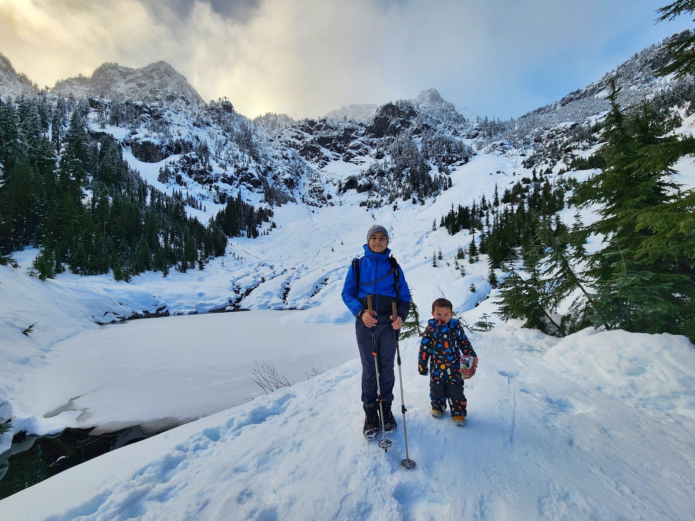 Decided to take both of my kids for the last hike of the year to Source Lake. Alpental was not open for skiing this weekend and I thought we could do a short snowshoeing to Source Lake from Alpental upper parking lot (Lot 4 I think).