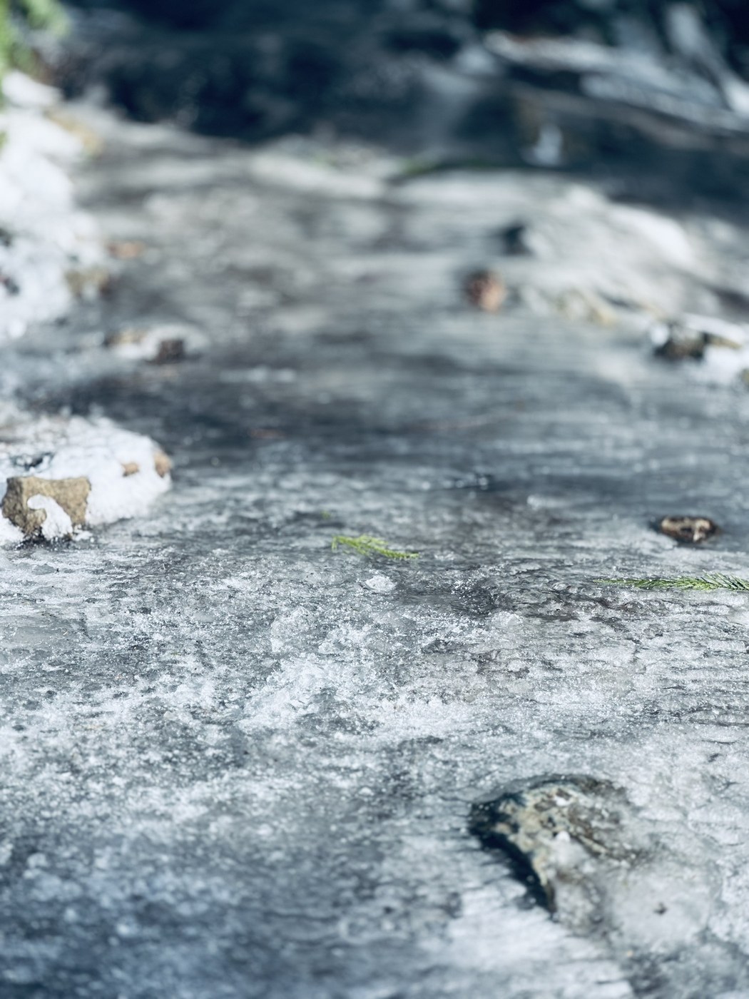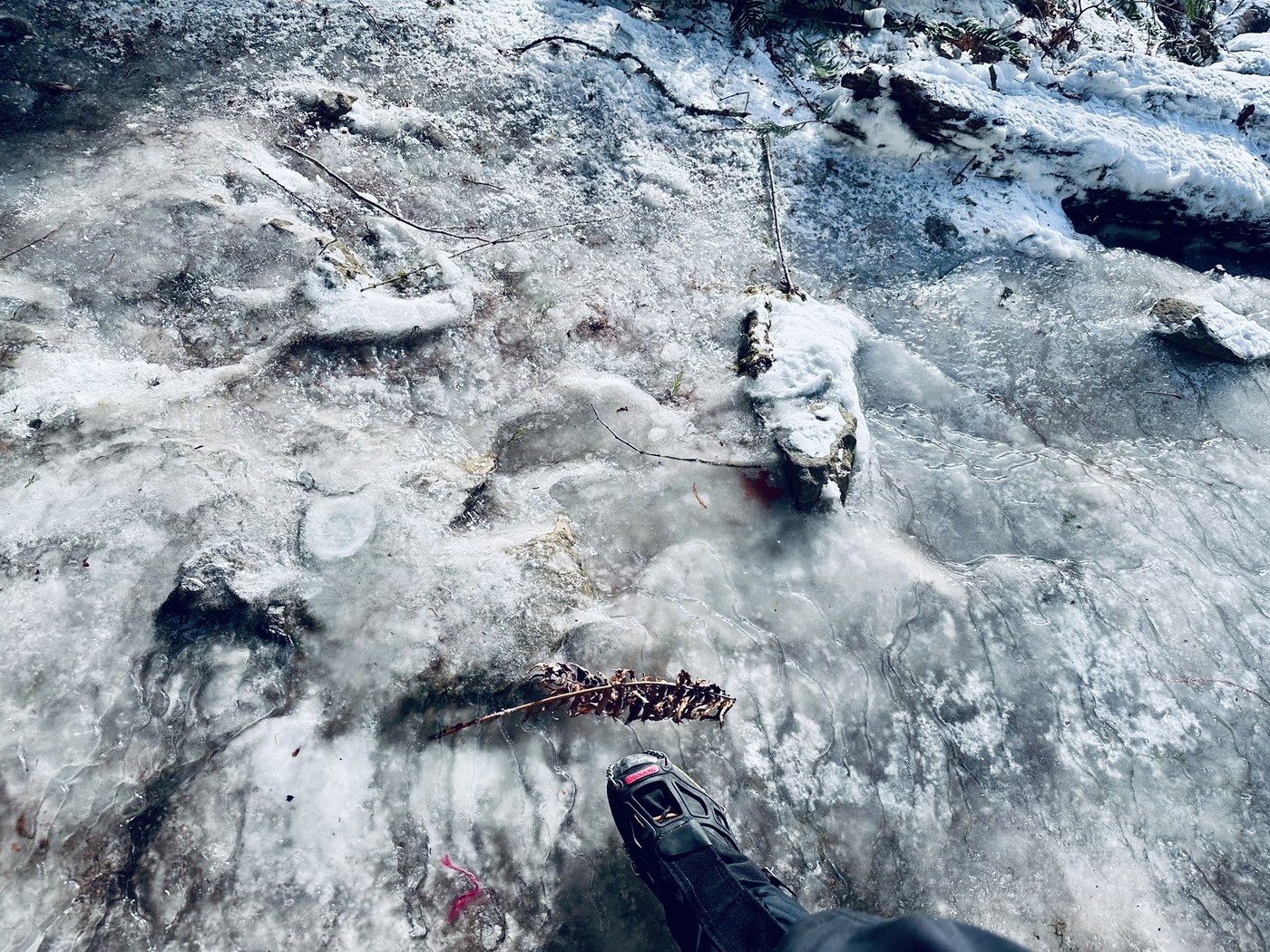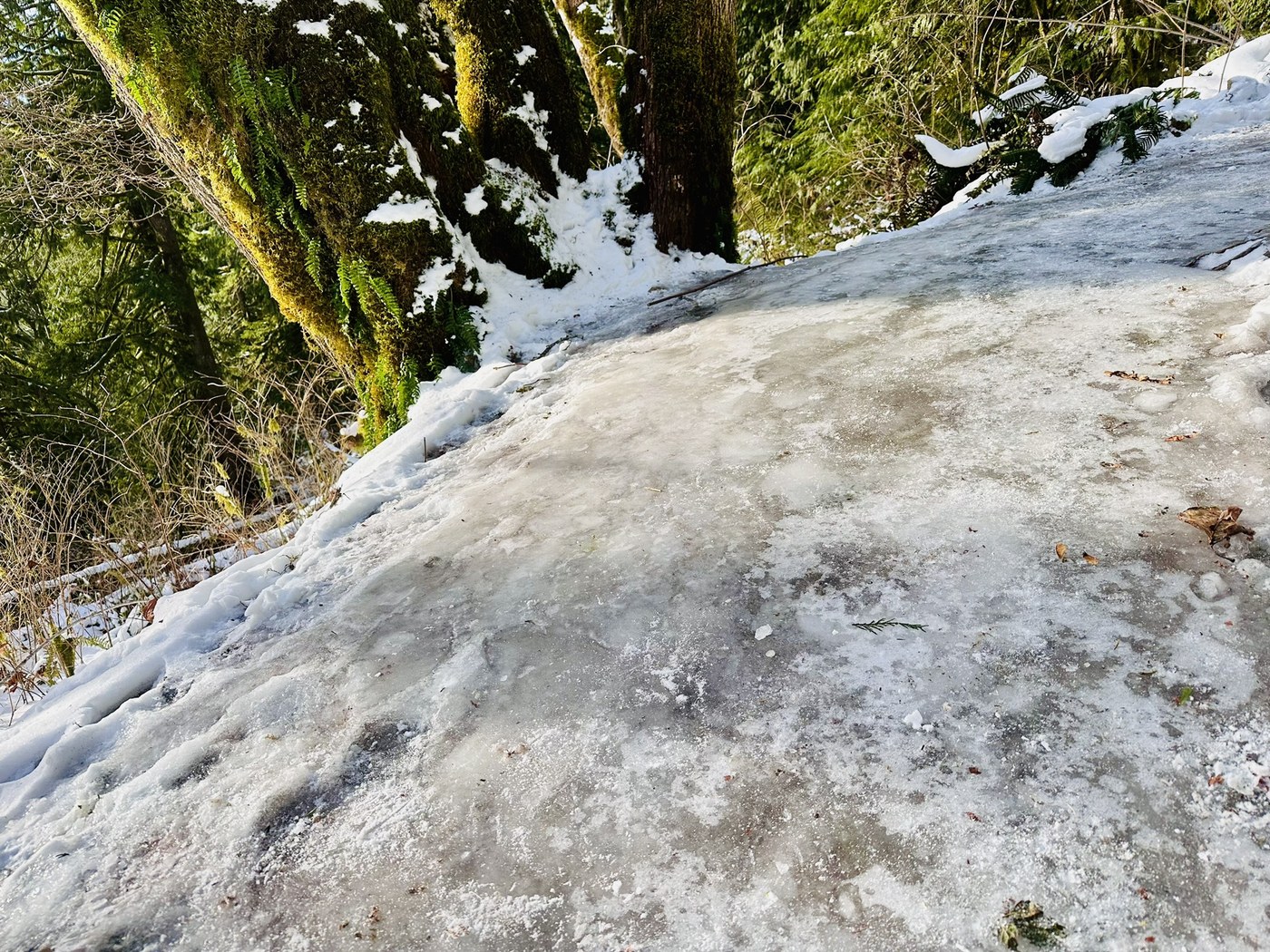 Trail was ok, though I wouldn’t do without spikes. One section was a sheet of solid ice. It wasn’t long, but to get around it wasn’t too easy either. I slipped around a bit in the parking lot so I put spikes on for the entire trail, but saw 2 people without them trying to go around the ice sheet and they were struggling. Pleasant snow texture to walk on with the spikes the rest of the trail
