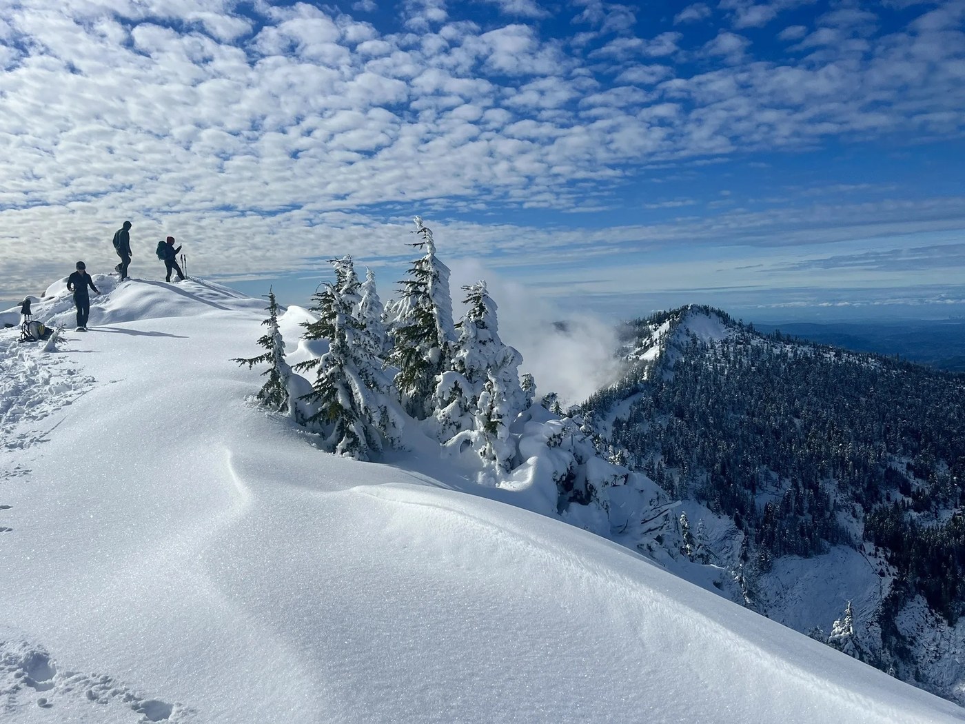 I traded off breaking trail today with another group which was tough going but the sun was shining and the views were great. Snowshoes were essential in my opinion; if I didn't have mine, I would have bailed. Hard to say when the weather will erase our tracks so best to have a downloaded map to refer to - once the trail dissapeared, I was certainly referring to mine.