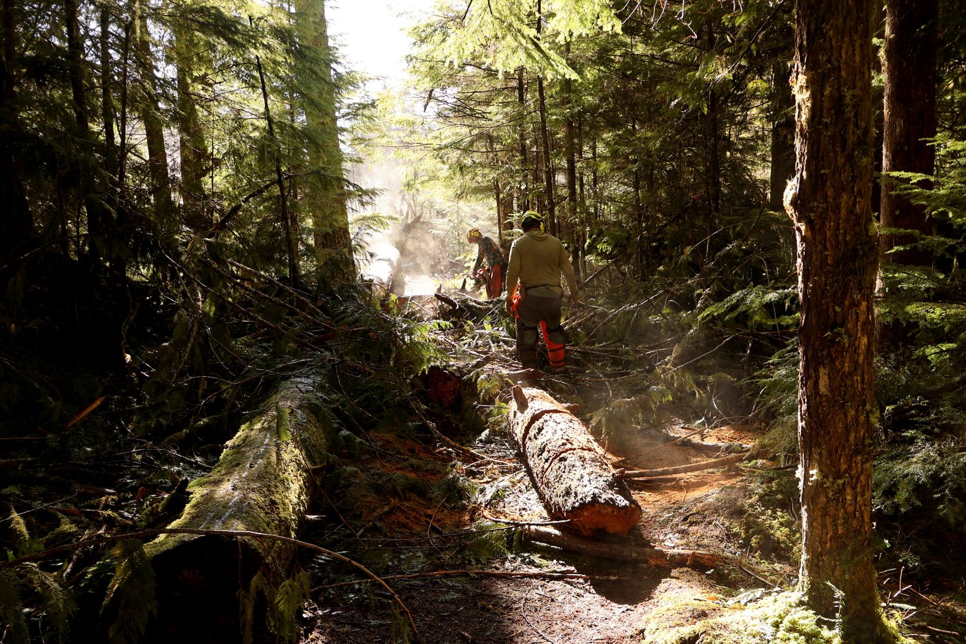 A group of sawyers from Evergreen Mt Bike Alliance worked on clearing logs and downfall most of the way to the waterfalls. Trail should be good to go.