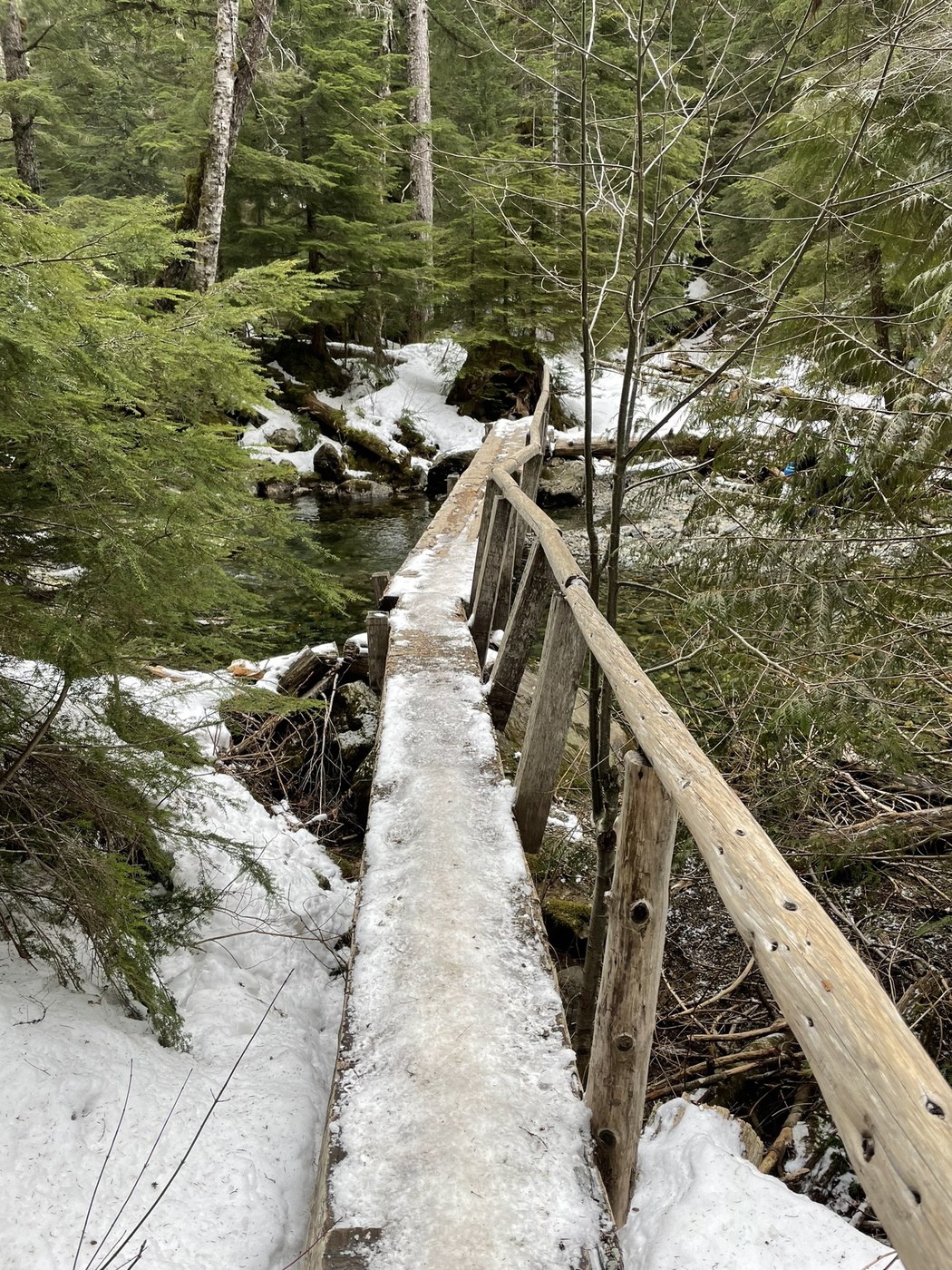 Packed down snow means spikes or poles are helpful. Road also has some patches. Decently busy trail arriving at 11am on a Saturday. Several blowdowns to navigate over but are all passable. Tried to find the eagle creek further boot bath but snow pack made it tricky. Went to the far end of the lake n back.