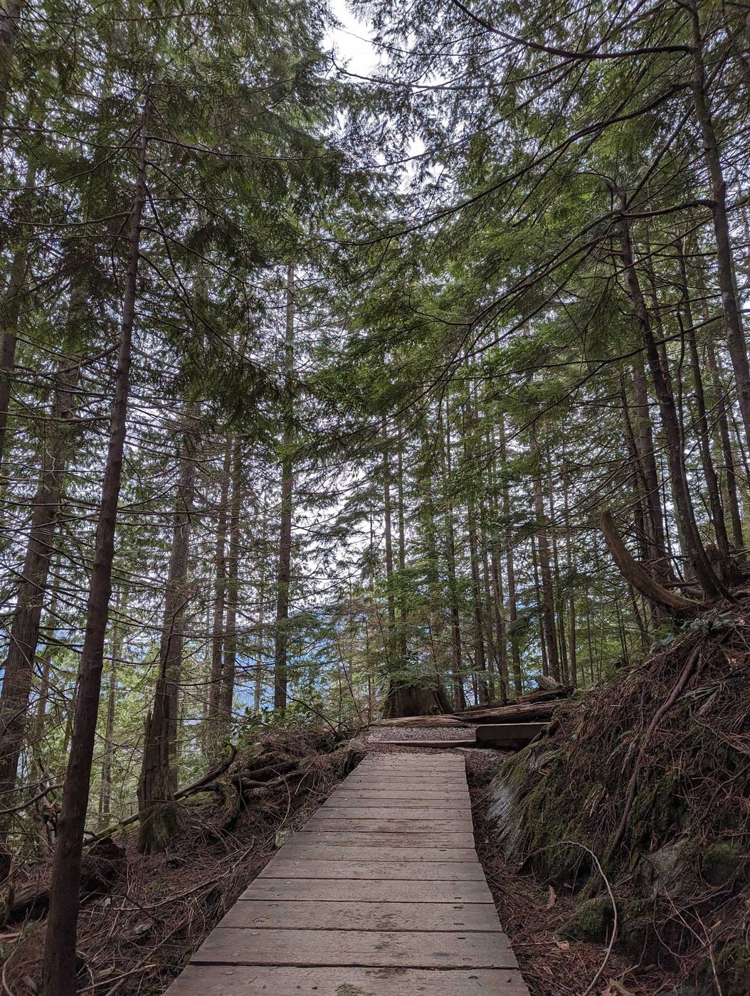 Perfect! We went in rainy conditions and it was good. We found people with children and dogs. Family friendly. In the hardest part, there are stairs that you will need. excellent sport at the end of the trail