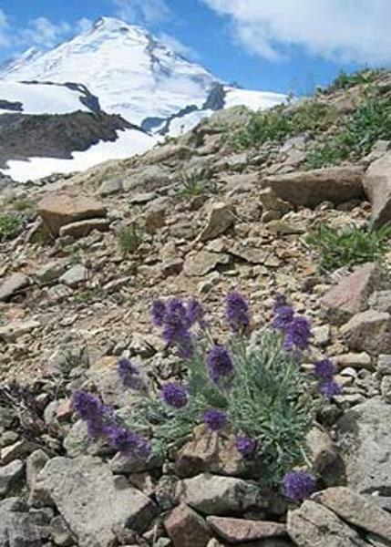 Hiked the Ptarmigan Ridge trail to Camp Kaiser in beautiful weather; just enough clouds to keep it from being unbearably hot. We've hiked this trail many times and have never seen it this snowfree this early- looks like September out there. The flowers are a little early, but not as advanced out towards Camp Kaiser as we thought they might be. We had the wonderful experience, wandering the ridge from below Coleman Pinnacle towards Lasiocarpa Ridge, of coming upon a herd of about 30 goats. They held still long enough for us to shoot a few photos before running off. We saw them again later on the hike back but not as close. There is a small fire burning in the lower Swift Creek drainage so there was a smell of smoke and some haze in the air- probably not as bad as east of the crest!