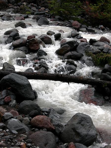A friend and I slogged our way up to the Park Butte lookout. The bridge over Rock Creek was washed out in last fall's flooding and the creek has changed course. I forded the creek a month ago and it was pretty dicey then with the glacial melt and hot weather. On 9-14-04, the creek looked nothing like it had a month previous. It changed course again and was swifer and deeper from the rain. We planned to stay 2 nights but came out after only one because it began snowing and then rained all night. We were worried about the creek rising. Sure enough, it was pretty scarey crossing. We had the whole area and lookout to ourselves. There were just 2 other cars at the trail head and those were for workers replacing the wooden slabs on the first part of the trail. Today as we came out, we passed 4 guys and their dog (the dog had to be carried over the creek) who were headed up to the look-out. Good thing we left when we did! It would have been a very unpleasant night in a tent, cold, wet and windy (12 mph at the top). The look-out is awesome. It is first come - first serve and very popular. Unfortunately for us, there were no views of much of anything other than fog and a few trees.