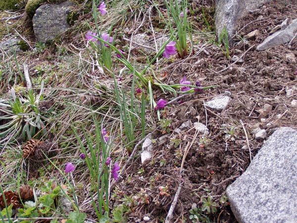 Trailhead sign warns of ticks -- do pay attention!! Found several ticks on our clothes and one person even found two the next day in her house. Flowers are just starting to show - need perhaps another week. Deep, slushy Snow started where the ridge flattens out.
