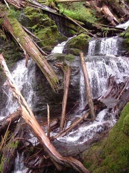 After the junction the trail gets much steeper and rockier. Last 3 miles or so of the trail is very well marked with orange/pink ribbons. Beautiful photo opps at both Madeline Creek and Donahue Creek. I personally think the falls on Donahue Creek rival those at Sol Duc any day. Thankfully, Donahue Creek/Flapjacks will never see the same kind of foot traffic. One small washout on the trail just below the junction to Black and White Lakes but the crossing is easy to see and manage.