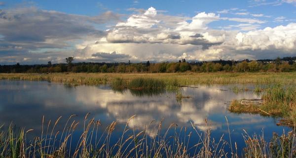 I like to walk during the week to stay in shape for weekend hikes, and Spencer Island just North of Everett has miles of trails which accomplish that with great scenery. Although the main entrance to Spencer Island is closed currently, you can still access the Island via Langus Riverfront Park. The dike is still out East of the old barn. Very few bugs right now. Lots of ripe blackberries. There were many dark clouds, with sunbreaks; so there was a nice glow for pics. Only a few other people here today, some on bikes; since some of the trails are paved. Views of the mountains were fleeting today. When clear, you can see Baker, Three Fingers and Pilchuck. Walked about seven miles total. Spooked three herons, and saw several other species.