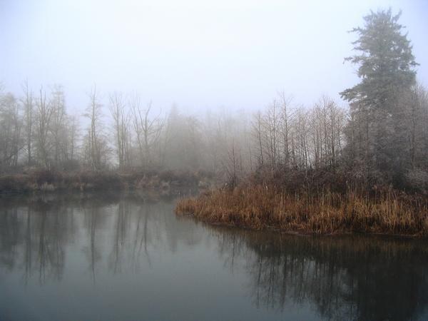 Thick frost on everything this morning, and very foggy. The path is under construction heading south from the old barn. It would be extremely muddy and soft, had it not been extremely frozen and hard. Watched a heron sitting on a branch twenty yards off the trail. About ten people here exploring today. Walked about six miles total. The route from Langus Riverfront Park straight out to Spencer Island is open again(was closed last time).