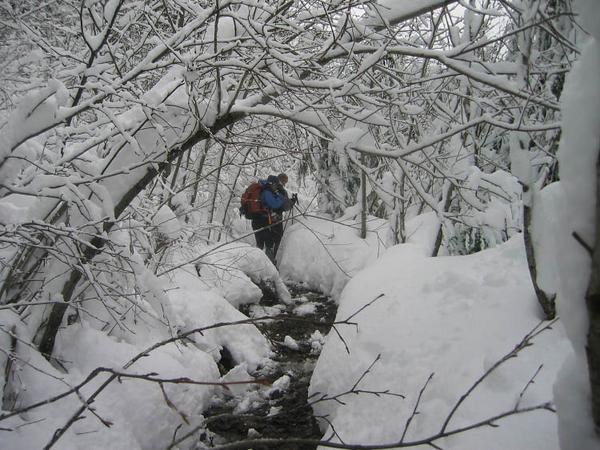 The small snow loaded trees were a pain to work through but there are no serious obstacles on the route.