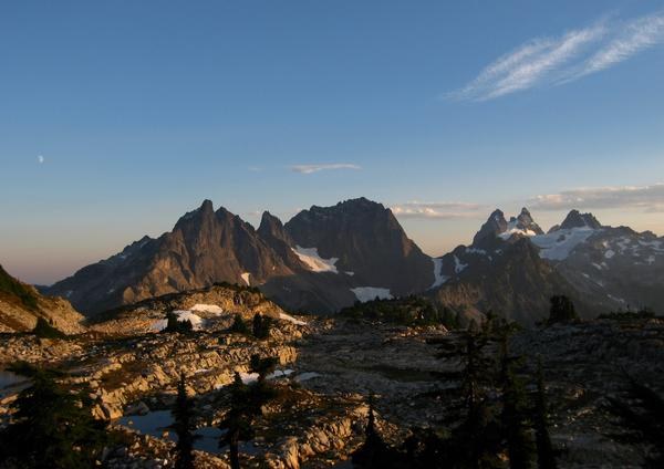 Upon reaching the top, you will happen upon Jade Lake first. The trail is nice and skirts the narrow edge to another short climb into the Emerald Lake area. here you find quite a few campsites and blueberries. Continue on for Opal Lake. When the trail comes to a largeish junction, continue on for the trail towards Tank Lakes. If you are not up to the last climb, there are plenty of good spots here.