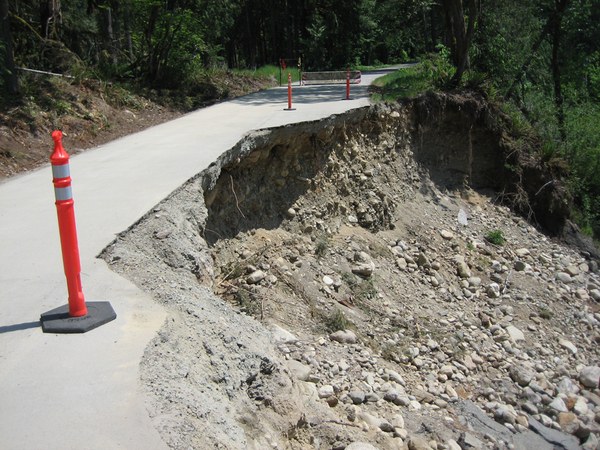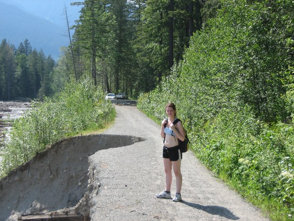 Thought I would see if the bridge over the Suiattle River was still out as mentioned in the trail report from July, 27th 2005. It still is, and from what little I could see on the other side of the river while standing on the remainder of the bridge, it looks like the road on that side is in bad shape. There is only about 100-200 feet of bridge missing. It looks like it would be relatively easy to repair as 95% of the bridge is still standing and in good shape.