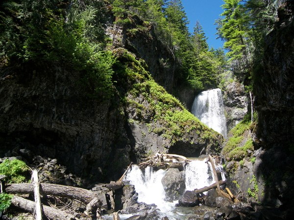 We couldn't show up at Soda Springs Campground until 2:00, so we burned some time and met at the Union Creek trailhead at 10:30 for a quick photography-oriented hike. The footbridge at the first creek crossing is out. There's a fairly wide tree to cross about 10 yards back, or you can do some stone-hopping. The creek was about shin-high at it's deepest. No major blowdown and the trail's in good shape. I think we saw four people all day.