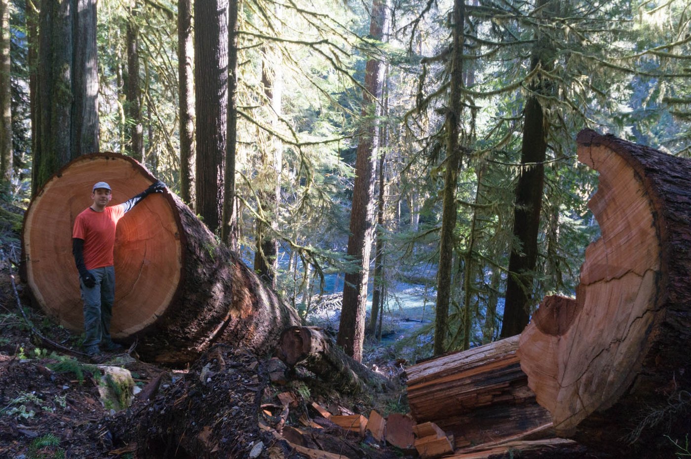 Around noon the fog began to burn off and the damp forest was steaming, giving the place an otherworldly feeling. Combined with the draping moss and giant trees it was an amazingly beautiful area. One particularly large tree had toppled and been recently cut, the diameter of the trunk larger than I am tall! Wow!