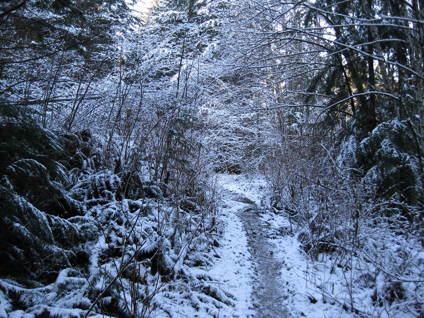 Most of the boot prints in the snow had continued on the left fork. If those folks had intended to reach the north summit of South Tiger Mountain by the most direct route, then that was a good choice. If, instead, they hoped to continue on the South Tiger Traverse, then some significant backtracking or informed route finding would have been required.