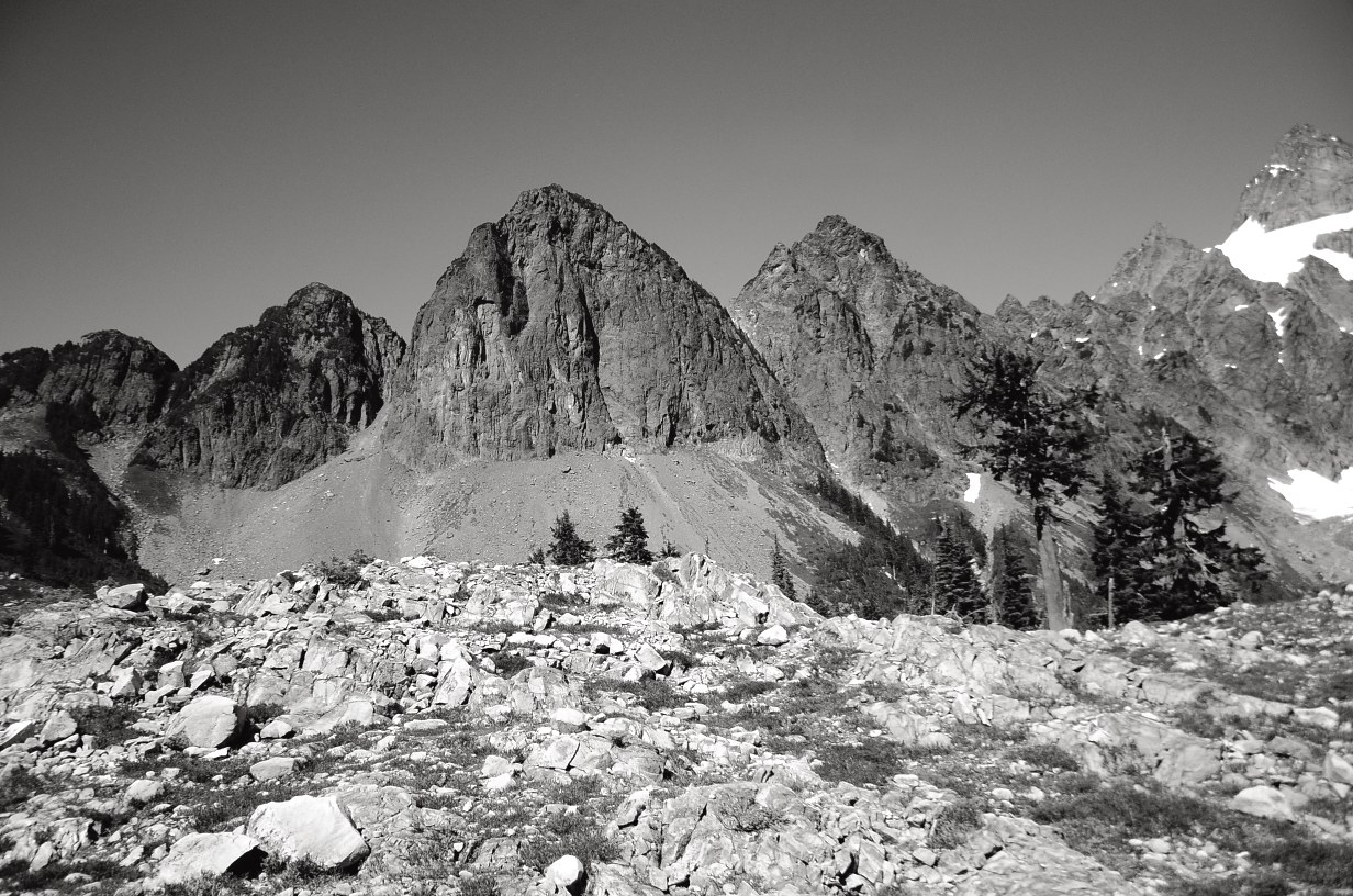There was, I think, one tree which had fallen on the trail, occupying the tread for something like ten feet. Walking along the space upon its side was a reasonable way to negotiate with the issue, otherwise cruising atop may be the other option - although this sounds less safe, and perhaps not recommended. The path was under shaded forest for the first mile and a half and got progressively exposed further on. I packed a liter and a half of water which was consumed in its entirety on the hike up. The hot weather was tremendously oppressive, and the path through the remaining leg up Lake Ann was a combination perfect for invoking a bit of mental discipline. On the uphill switchbacks paved with loose rocks that felt more like cinders, we examined the possibility of defeat that the hike to Lake Ann might justifiably impose. In the brutal throes of solar torture, we soldiered on assuring ourselves that the destination would be sweet and its rewards glorious. Not quitting really did feel a bit transformative; something to hang on to in real life.