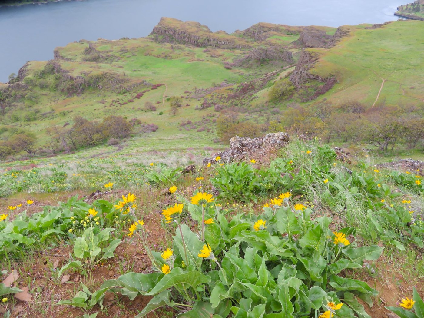 We arrived around 7:20am to an empty parking lot. Traveling from West of Lyle, the drive was in the rain until Bingen. It seemed inevitable we'd be hiking in the rain but instead drove into dry weather. The temps were perfect with a light breeze.
